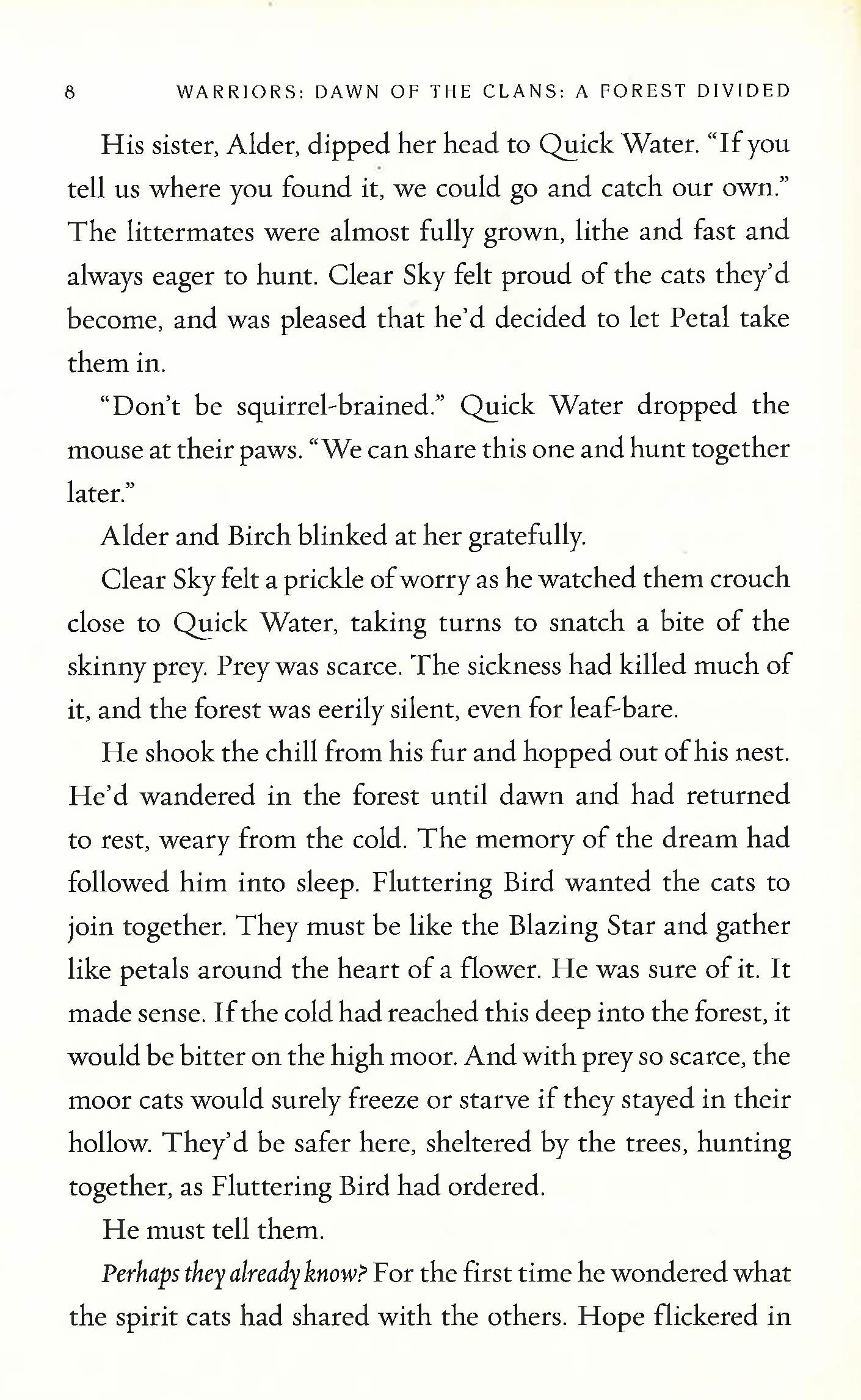 Discover the origins of the warrior Clans in the fifth book of this thrilling prequel arc in Erin Hunters #1 nationally bestselling Warriors series. The Dawn of the Clans arc takes readers back to the earliest days of the Clans, when the cats first settled in the forest and began to forge the warrior code. The spirit-cats have spoken: to survive, the cats from the mountains must grow and spread like the Blazing Star. Clear Sky believes the only way to grow is to band together again, but few cats are willing to ally with him. While Tall Shadow plans to establish a new camp in the pine forest, River Ripple is content by the water, and Wind Runner has made her own home on the moor. The time has now come for all cats to decide where they will live - and where their allegiances truly lie.