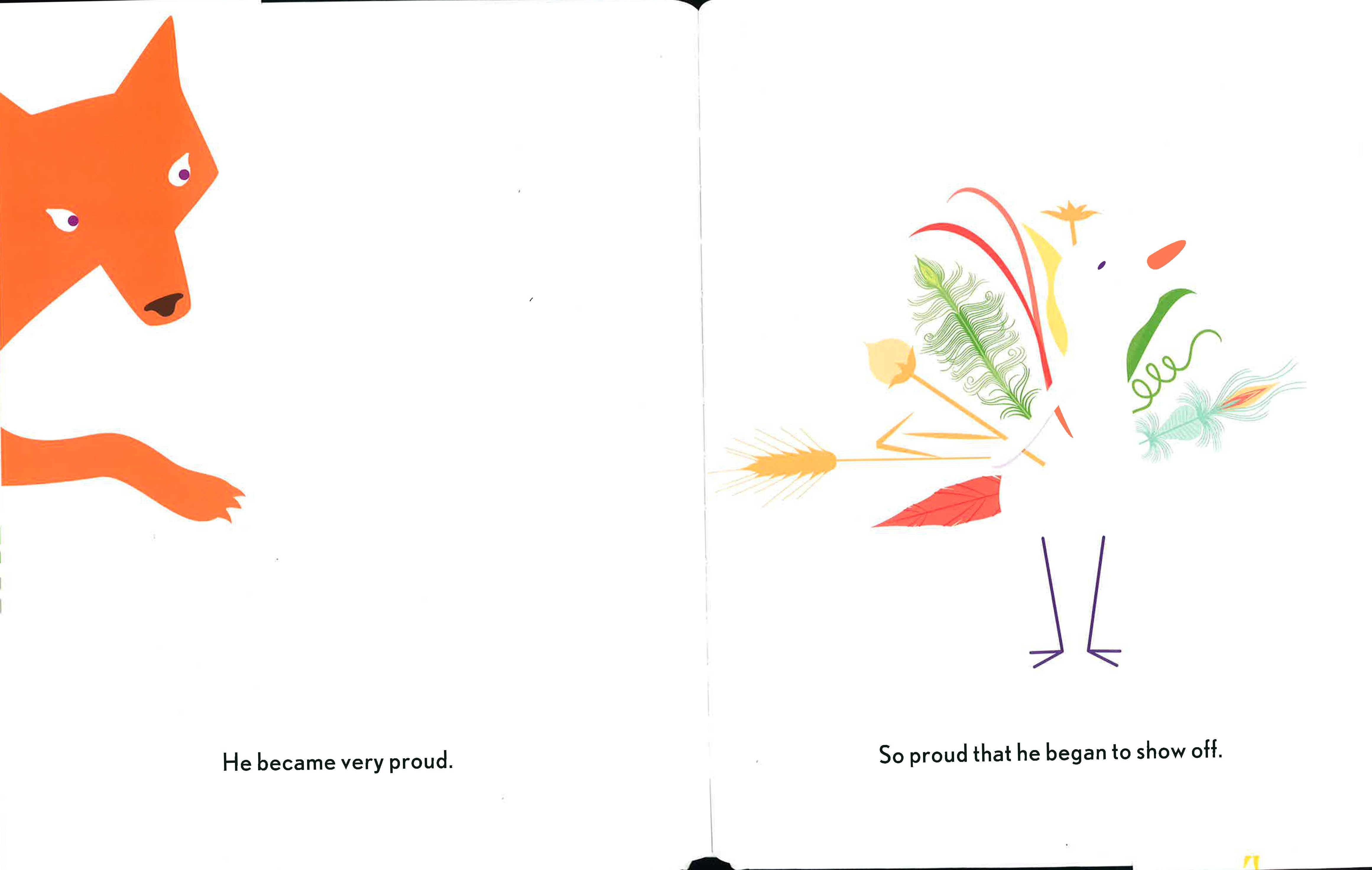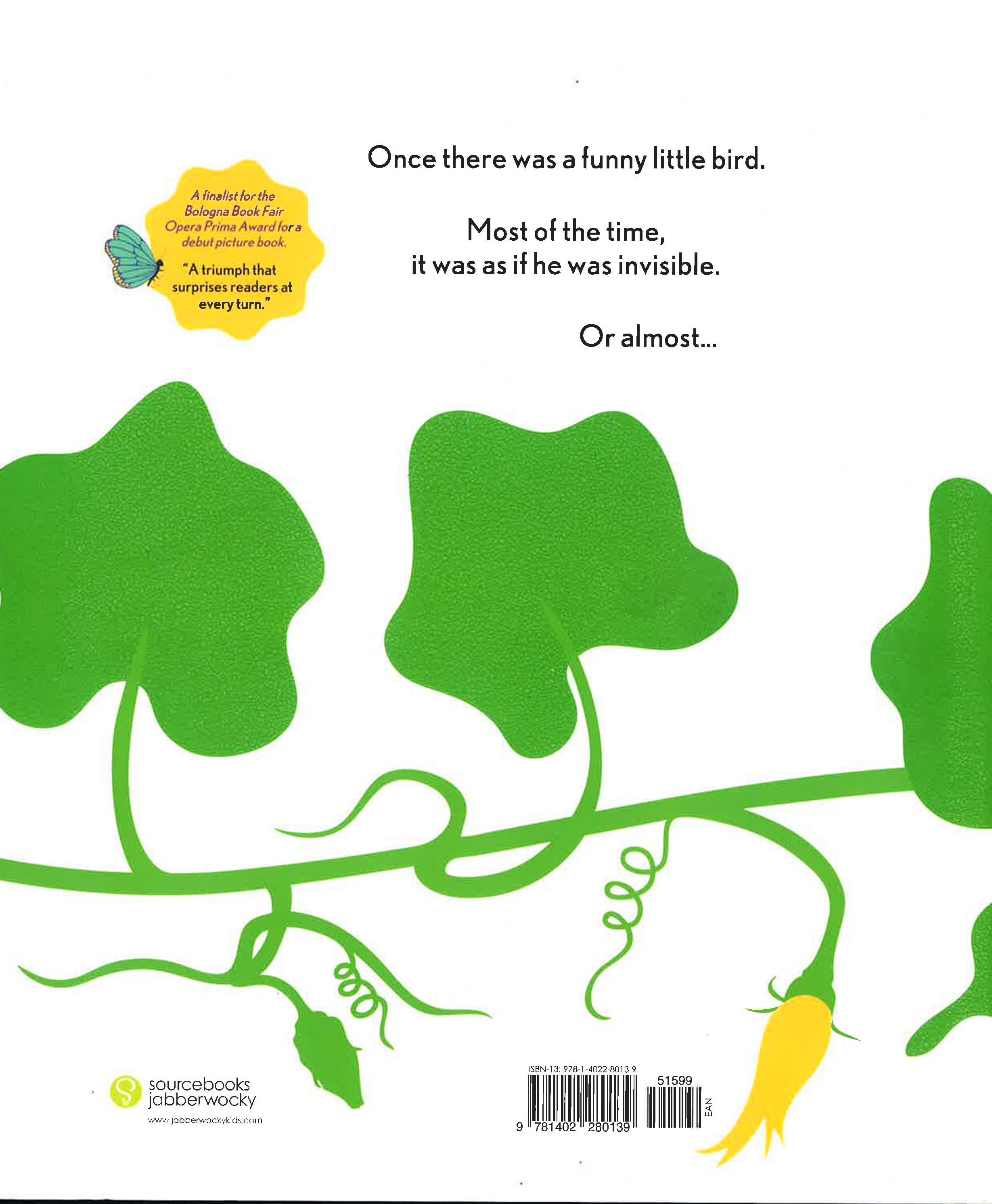 2013 Society of Illustrators, Original Art Gold Medal Winner A lonely, invisible bird mistakenly believes that adorning himself with flashy feathers and flowers will make him beautiful and win him new friends. Except his plan quickly backfires when his magnificent plumage attracts the attention of everyone, even the fox! In his rush to safety the little bird loses every last bit of his new decorations, making him invisible once again. Except now in place of his loneliness is the knowledge that putting others first is the key to friendship and high self-esteem.