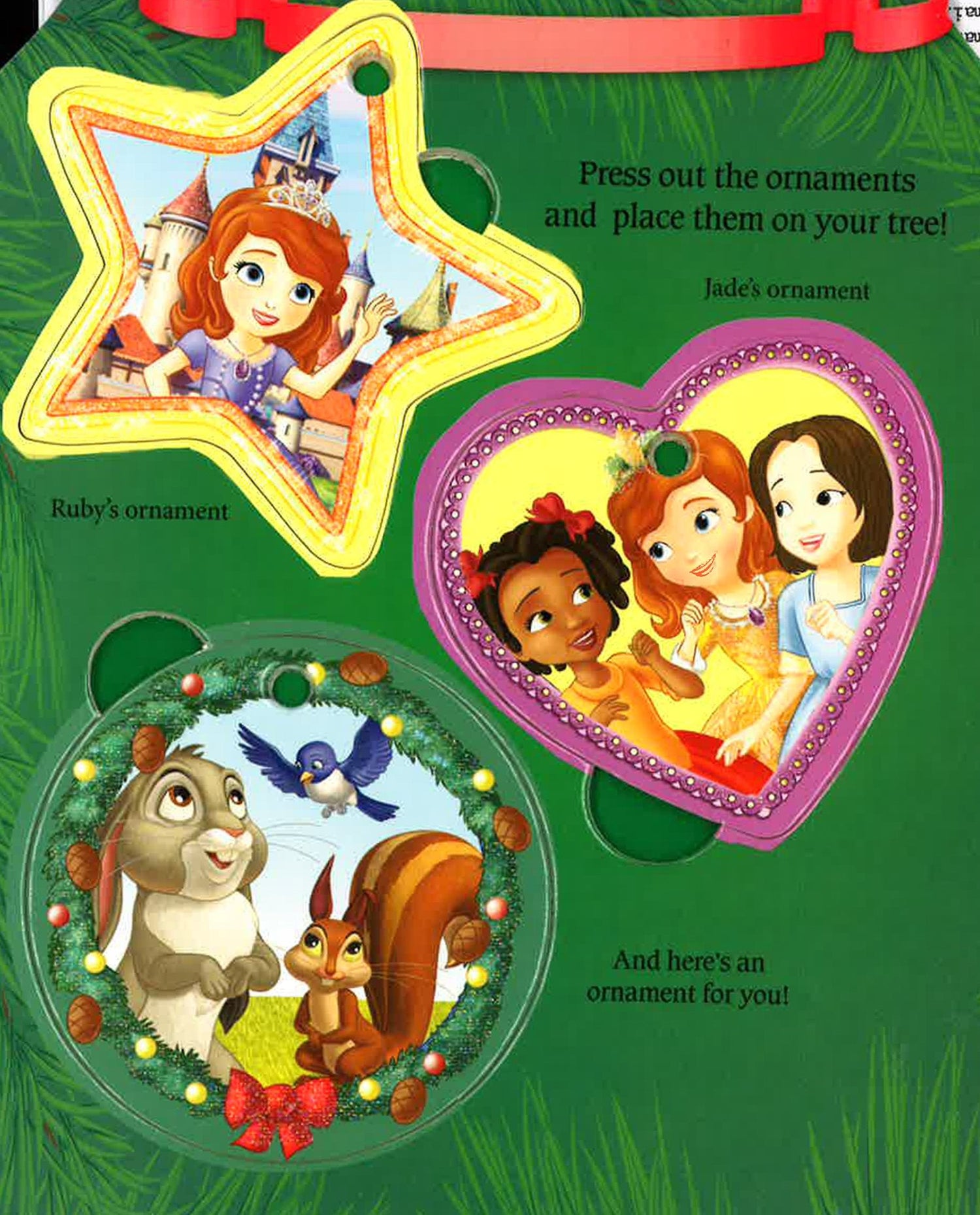 This board book with glitter on the cover includes three press-out glittery ornaments--a heart, a star, and a wreath--that make a perfect holiday gift for any little girl. Each ornament features characters from Sofia the First!