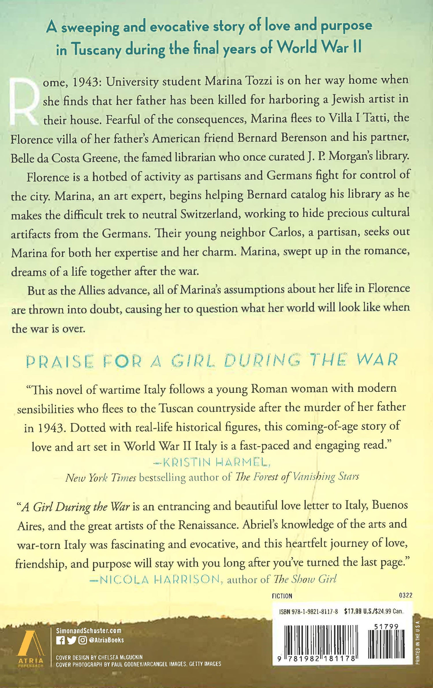 But when Carlos disappears, all of Marina’s assumptions about her life in Florence are thrown into doubt, and she’ll have to travel halfway around the world to unravel what really happened during the war.