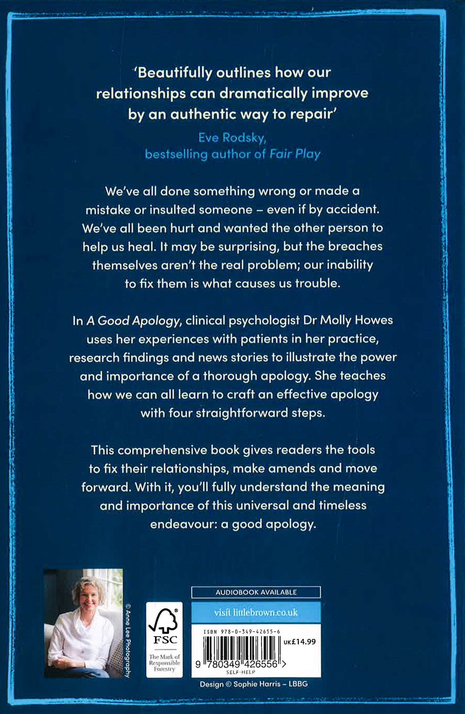 Beautifully outlines how our relationships can dramatically improve by an authentic way to repair' Eve Rodsky, bestselling author of Fair Play'Practical, effective remedies that can help make reconciled relationships possible' Bishop Michael B CurryIn the vein of Hold Me Tight and The Body Keeps the Score, this paradigm-shifting book on apologies shows how they work, why they're so hard, and why they are essential for rebuilding relationships.We've all done something wrong or made a mistake or insulted someone - even if by accident. We've all been hurt and wanted the other person to help us heal. It may be surprising, but the breaches themselves aren't the real problem; our inability to fix them is what causes us trouble.In A Good Apology, clinical psychologist Dr. Molly Howes uses her experiences with patients in her practice, research findings, and news stories to illustrate the power and importance of a thorough apology. She teaches how we can all learn to craft an effective apology with four straightforward steps.An apology is a small-scale event between people, but it's enormously powerful. This comprehensive book gives readers the tools to fix their relationships, make amends, and move forward. With it, you'll fully understand the meaning and importance of this universal and timeless endeavour: a good apology.