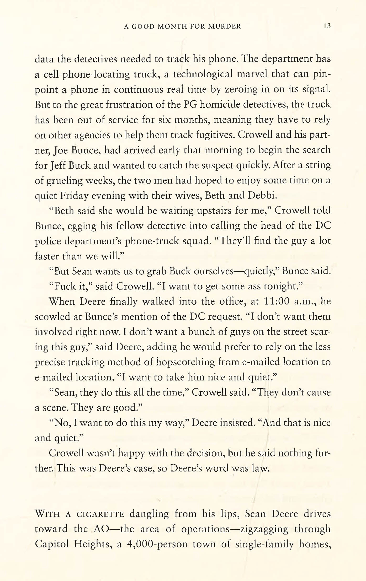 'Superb - one of the best real-life copy books ever written.' Lee Child In a true crime cross between James Ellroy and David Simon's The Wire, A Good Month for Murder follows twelve homicides, three police-involved shootings and the furious hunt for an especially brutal killer in Washington D.C. After gaining unparalleled access to the homicide unit in Prince George's County, which borders the nation's capital, bestselling author Del Quentin Wilber begins shadowing the talented, often quirky detectives who get the call when a body falls. After a quiet couple of months, all hell breaks loose: suddenly every detective in the squad is scrambling to solve one shooting and stabbing after another. Meanwhile, the entire unit is obsessed with a stone-cold 'red ball', a high-profile case involving a seventeen-year-old honour student attacked by a gunman who kicked down the door to her house and shot her in her bed. This is the inside story of how a team of detectives carry out their almost impossible job. Murder is the police investigator's ultimate crucible: to solve a killing, a detective must speak for the dead. A Good Month for Murder is a compelling true crime account which shows what it takes to succeed when the stakes couldn't possibly be higher.
