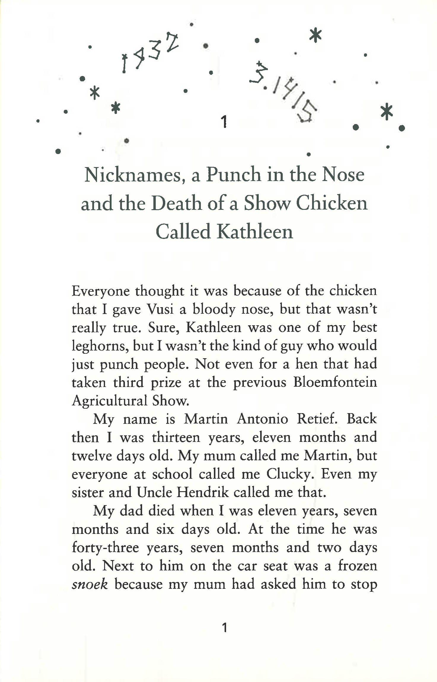 No one talks about it. His mum refuses to leave the house. His sister is only interested in her boyfriend. And Martin? He spends his afternoons alone with the family chickens – that’s why they call him ‘Clucky’ – and at night, he solves difficult maths problems in his head to help him fall asleep.