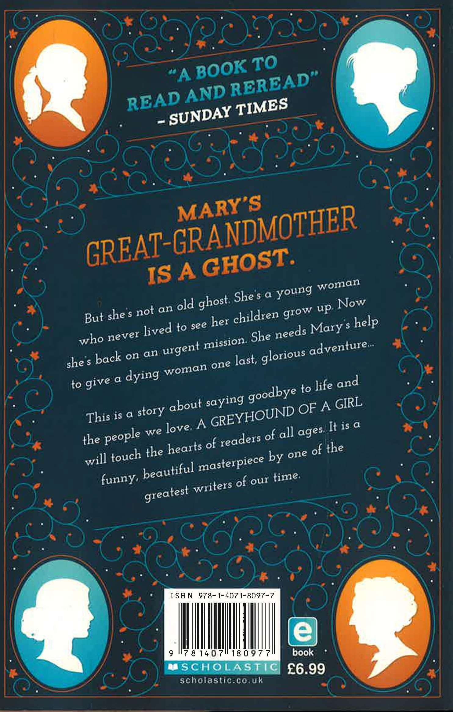 12 year old Mary's beloved grandmother is near the end of her life. Letting go is hard - until Granny's long-dead mammy appears at Mary's door, returning to help her dying daughter say goodbye. But first she needs to take them all on a visit to the past. A sharp and tender tale of family history and the bonds between mothers and daughters.12 year old Mary's beloved grandmother is near the end of her life. Letting go is hard - until Granny's long-dead mammy appears. Her ghost has returned to help her dying daughter say goodbye to the ones she loves. But first she needs to take them all on a road trip to the past. A GREYHOUND OF A GIRL is a perfectly-pitched, funny and tender tale about four generations of an Irish family, and the special bonds between mothers and daughters. It will entrance readers from 10 to adult.