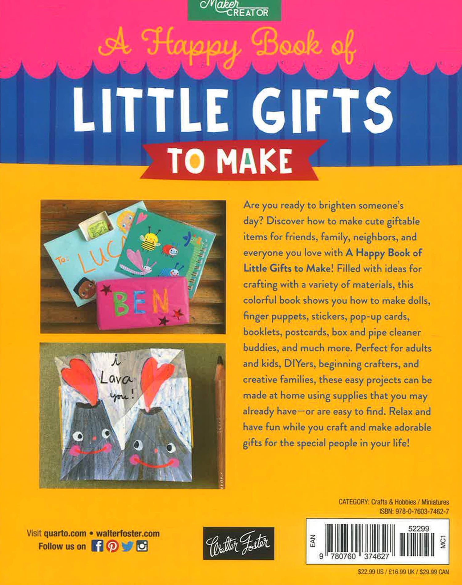 A Happy Book of Little Gifts to Make includes varied projects done in all kinds of materials, from papier-mache and paper to crayonspaint, and paint pens. With this book, you can learn to make sweet and whimsical: