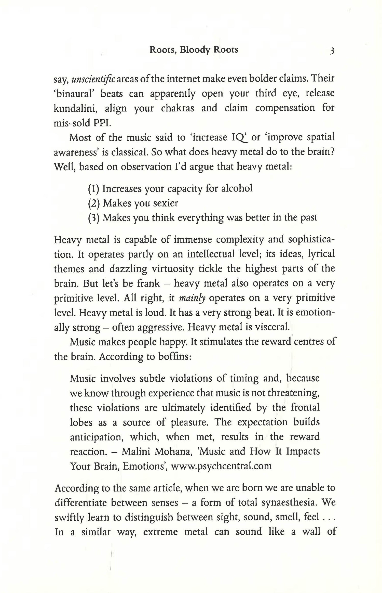 WARNING: This book will contain references to the musical genre known as heavy metal, not a loosely scientific defined subset of elements that exhibit metallic properties.