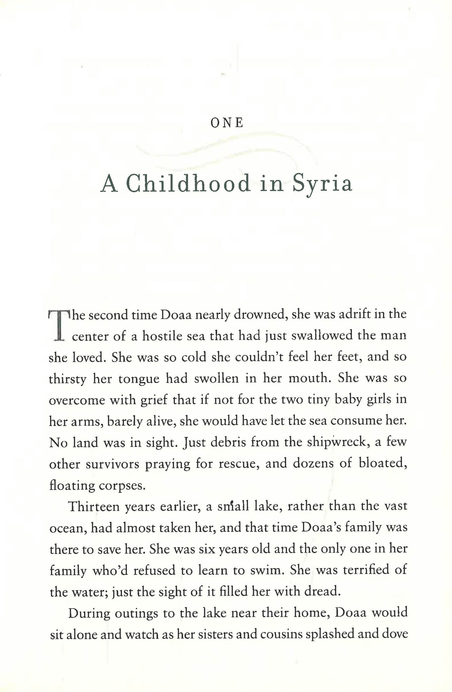 Adrift in a frigid sea, no land in sight, just debris from the ship's wreckage and floating corpses all around, nineteen-year-old Doaa Al Zamel stays afloat on a small inflatable ring and clutches two little girls―barely toddlers―to her body. The children had been thrust into Doaa's arms by their drowning relatives, all refugees who boarded a dangerously overcrowded ship bound for Italy and a new life. For days as Doaa drifts, she prays for rescue and sings to the babies in her arms. She must stay alive for them. She must not lose hope.