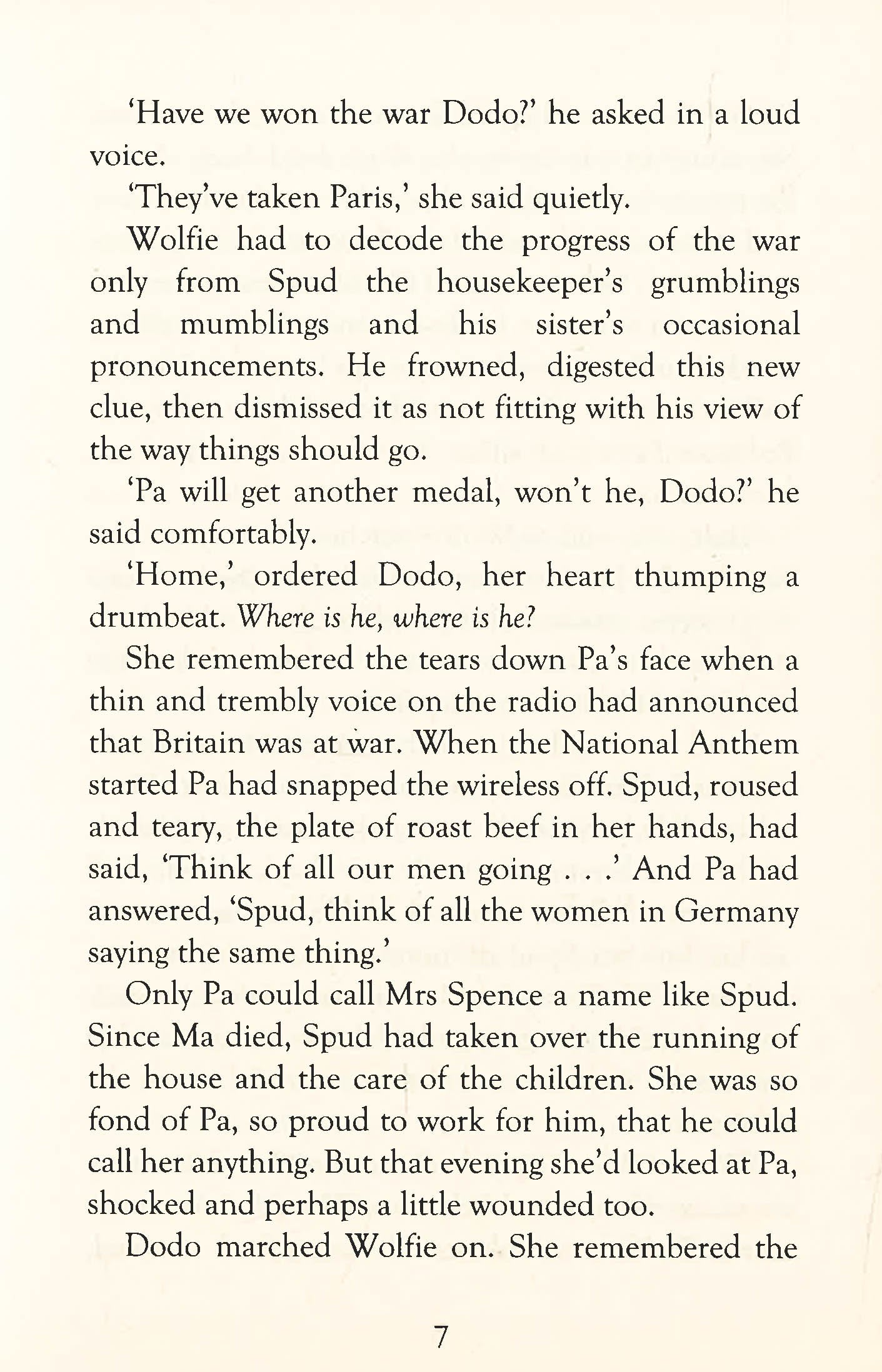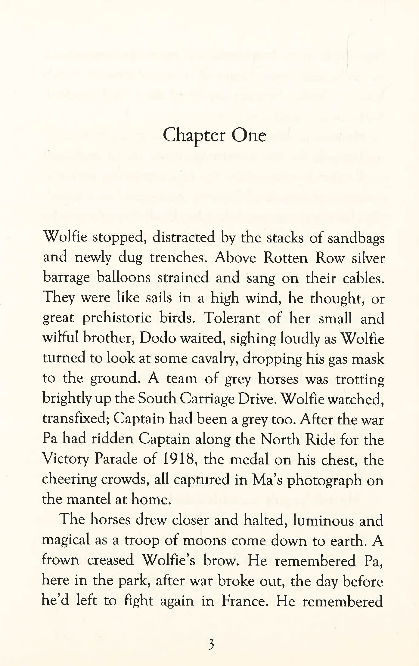 It is 1940. As the Second World War escalates and London becomes a target for German bombs, Dodo and her horse-mad little brother Wolfie are evacuated to the country, away from everything they know. After weeks of homesick loneliness, they come across an orphaned foal. They name the horse Hero for surviving against the odds and together they raise him, train him, and learn to ride. Their days are suddenly full of life and excitement again, but the shadow of war looms over their peaceful existence, and soon Hero must live up to his name . . .