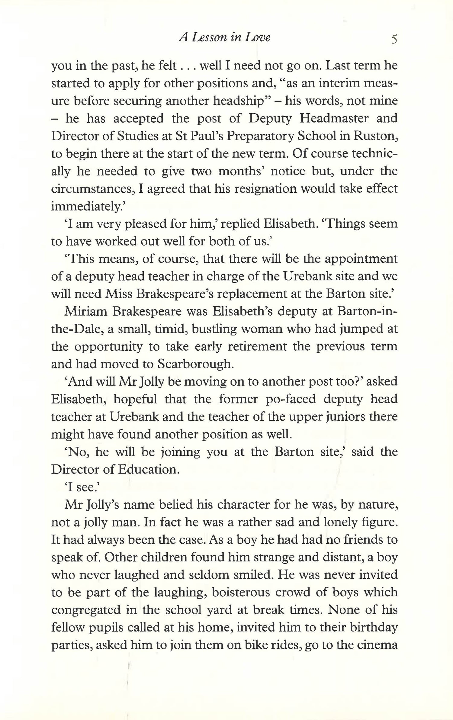 Meanwhile, head teacher Elisabeth Stirling faces a new challenge for the start of the school year. An eccentric teacher joins the staff, and there's also a worrying case of potential negligence to answer. In the village too, a puritanical new vicar stirs up trouble. But as always, mixed in with the drama there's plenty of gossip, laughter, friendship - and love - in Barton-in-the-Dale.