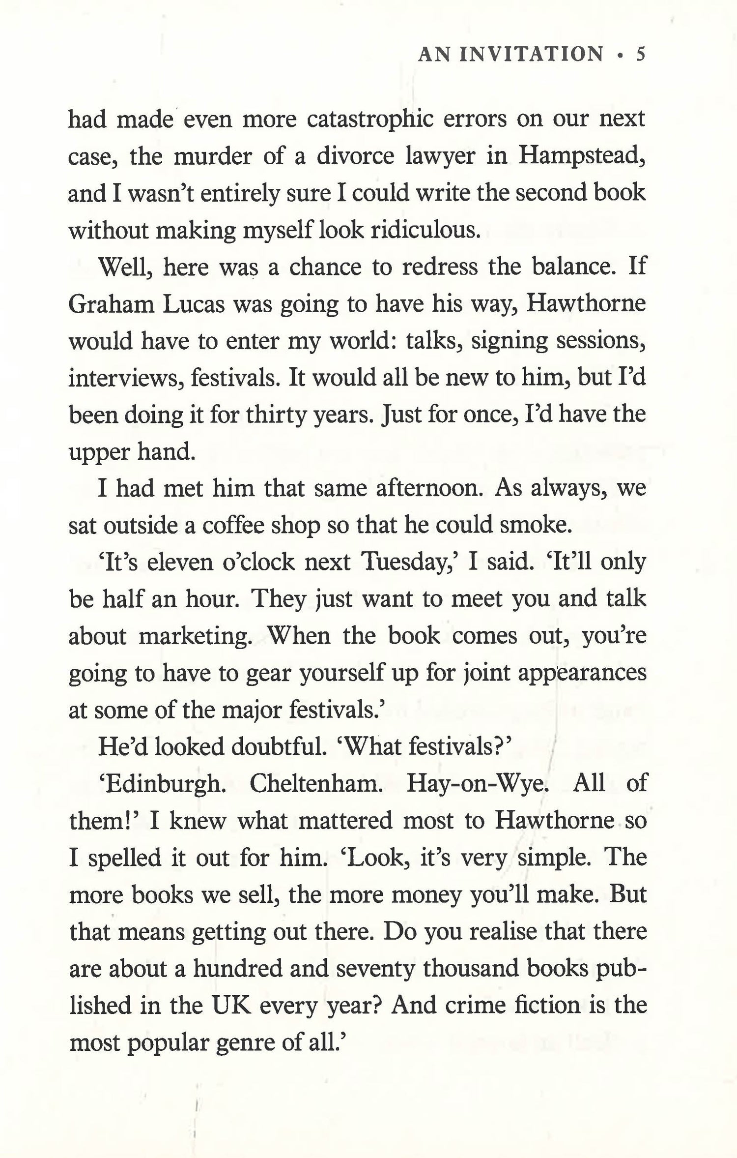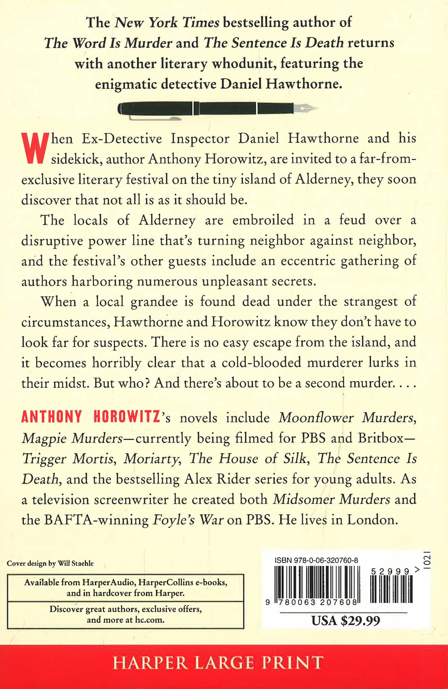 When Ex-Detective Inspector Daniel Hawthorne and his sidekick, author Anthony Horowitz, are invited to an exclusive literary festival on Alderney, an idyllic island off the south coast of England, they don't expect to find themselves in the middle of murder investigation--or to be trapped with a cold-blooded killer in a remote place with a murky, haunted past.