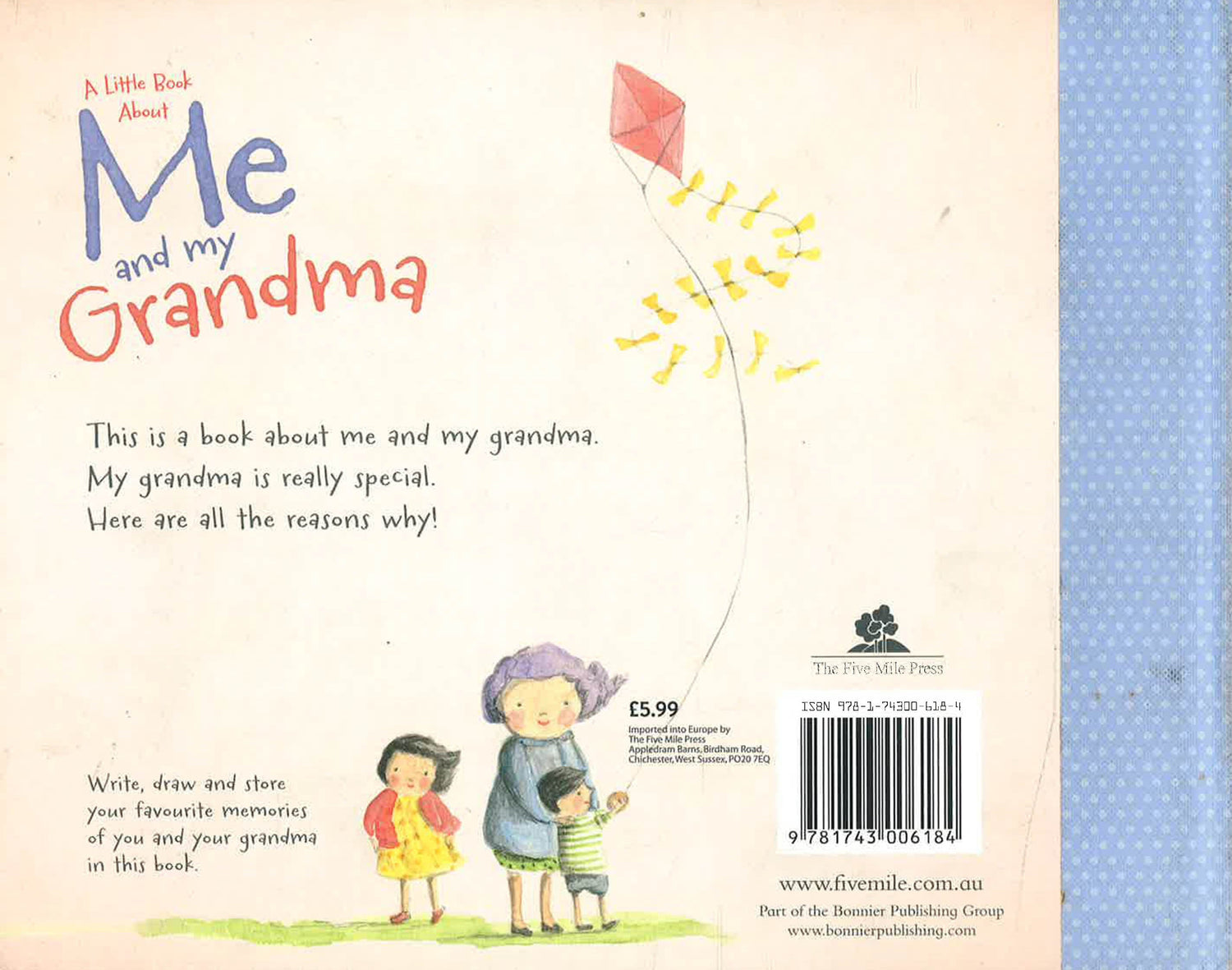 This is a book to fill in and share with your grandma. Write, draw and store your favourite memories of you and your grandma in this beautiful picture book.