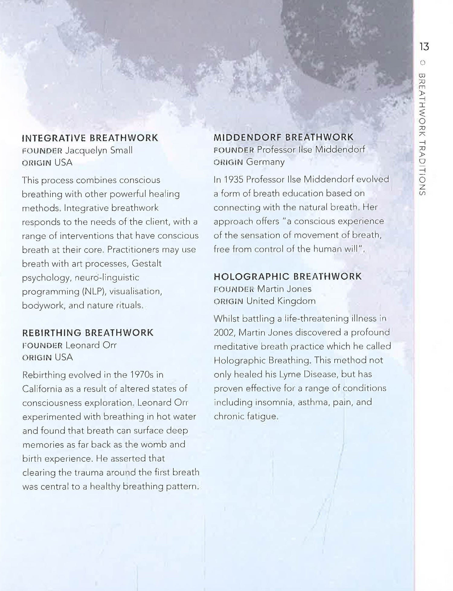 In a beautifully illustrated package, Breathwork gives you 50 step-by-step practices that you can use at home, each with expert advice on body position, depth of breath, speed of breath, visualization, duration, and repetition. Techniques include conscious connected breathing, pranayama, and qigong breathwork.