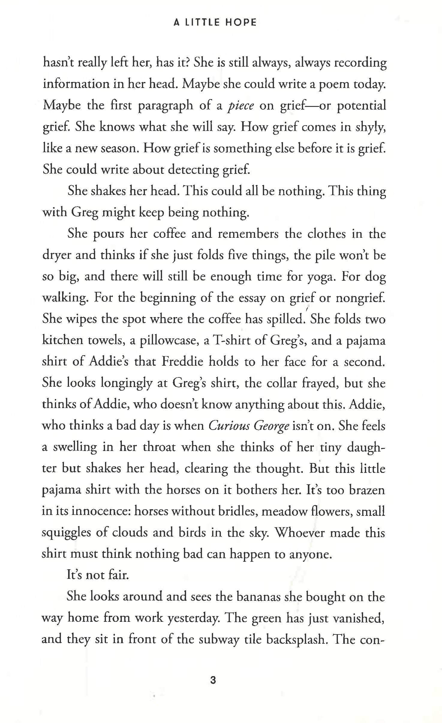 An “immersive…illuminating” (Booklist) and life-affirming novel following the residents of an idyllic Connecticut town over the course of a year, A Little Hope explores the intertwining lives of a dozen neighbors as they confront everyday desires and fears: a lost love, a stalled career, an illness, and a betrayal.