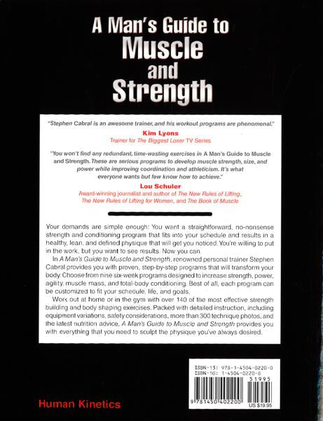 Your demands are simple enough. You want a straightforward, no-nonsense strength and conditioning program that fits into your schedule and results in a healthy, lean, and defined physique that will get you noticed. You're willing to put in the work, but you want to see results. Now you can. In A Man's Guide to Muscle and Strength, renowned personal trainer Stephen Cabral provides you with proven, step-by-step programs that will transform your body. Choose from nine six-week programs designed to increase strength, power, agility, muscle mass, and total-body conditioning. Best of all, each program can be customized to fit your schedule, your life, and your goals. Work out at home or in the gym with over 140 of the most effective strength building and body shaping exercises. Packed with detailed instruction, more than over 300 technique photos, equipment variations, safety considerations, and the latest nutrition advice, A Man's Guide to Muscle and Strength provides you with everything that you need to sculpt the physique you've always desired.