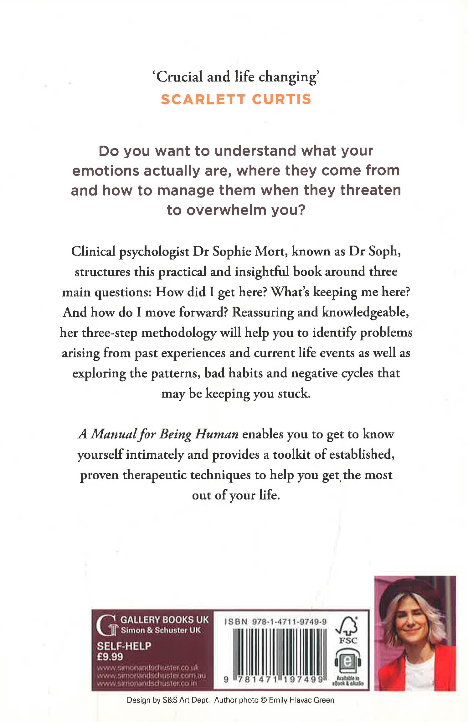 In this practical and insightful guide, Dr Soph will help you to understand why we all feel anxious, stressed, insecure and down from time to time. Her three-step methodology, developed through years of experience supporting people to make genuine change in their lives, will help you to identify problems arising from past experiences and current life events, look at the patterns, bad habits and negative cycles that may be keeping you stuck, and then draws on established, proven therapeutic techniques such as mindfulness, journaling, self-compassion, grounding and breathing and relaxation techniques to provide a toolkit of go--to techniques to use any time.