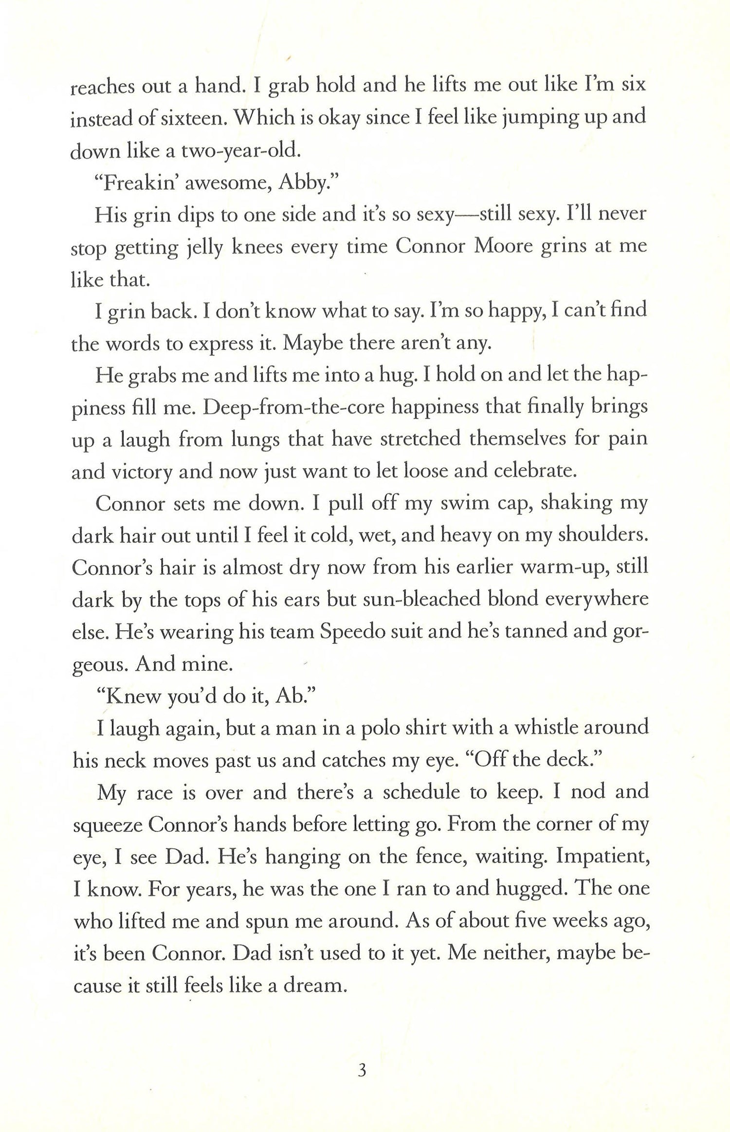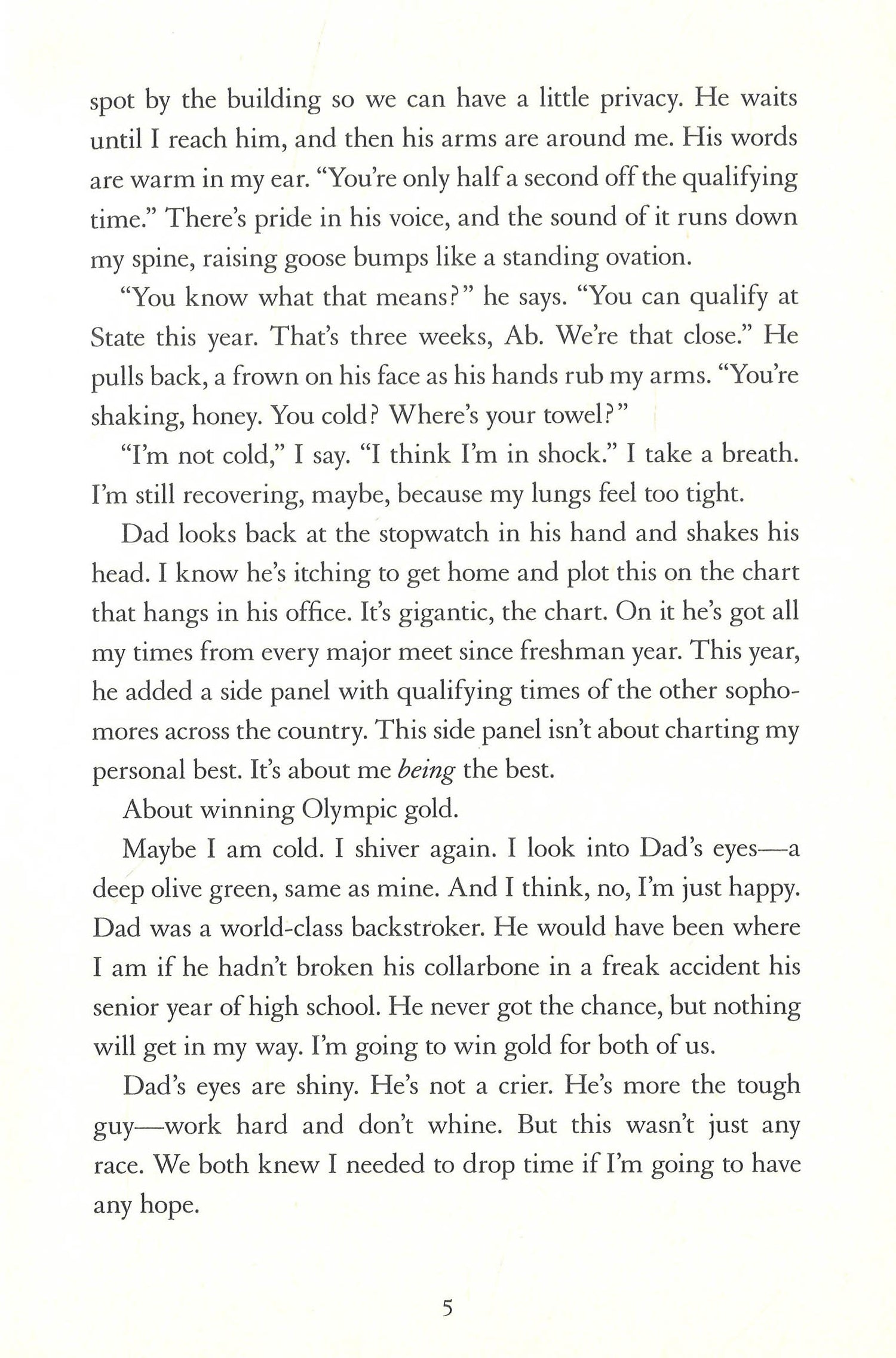 Sixteen-year-old Abby Lipman is on track to win the state swim championships and qualify for the Olympic trials when a fainting incident at a swim meet leads to the diagnosis of a deadly heart condition. Now Abby is forced to discover who she is without the one thing that's defined her entire life.