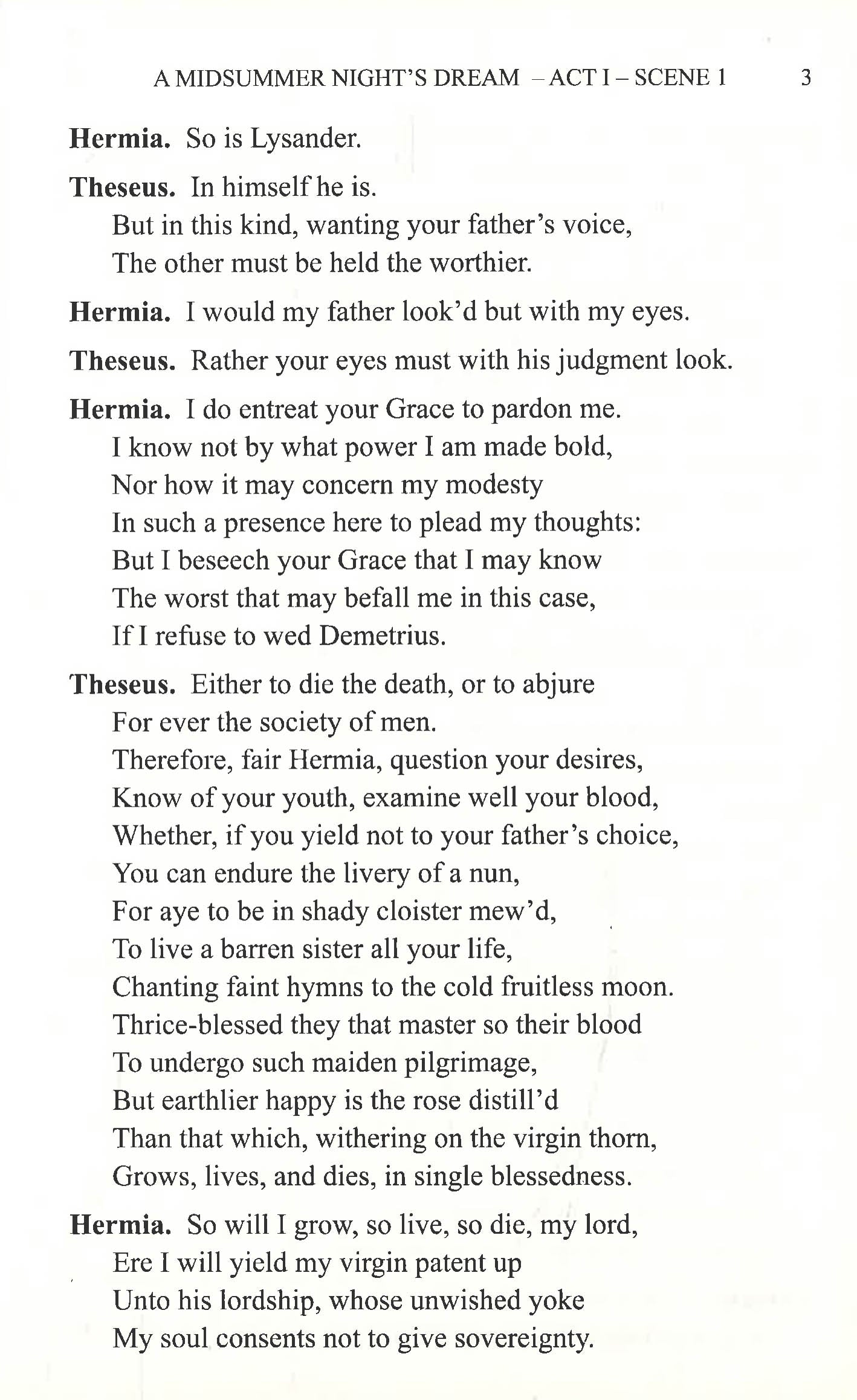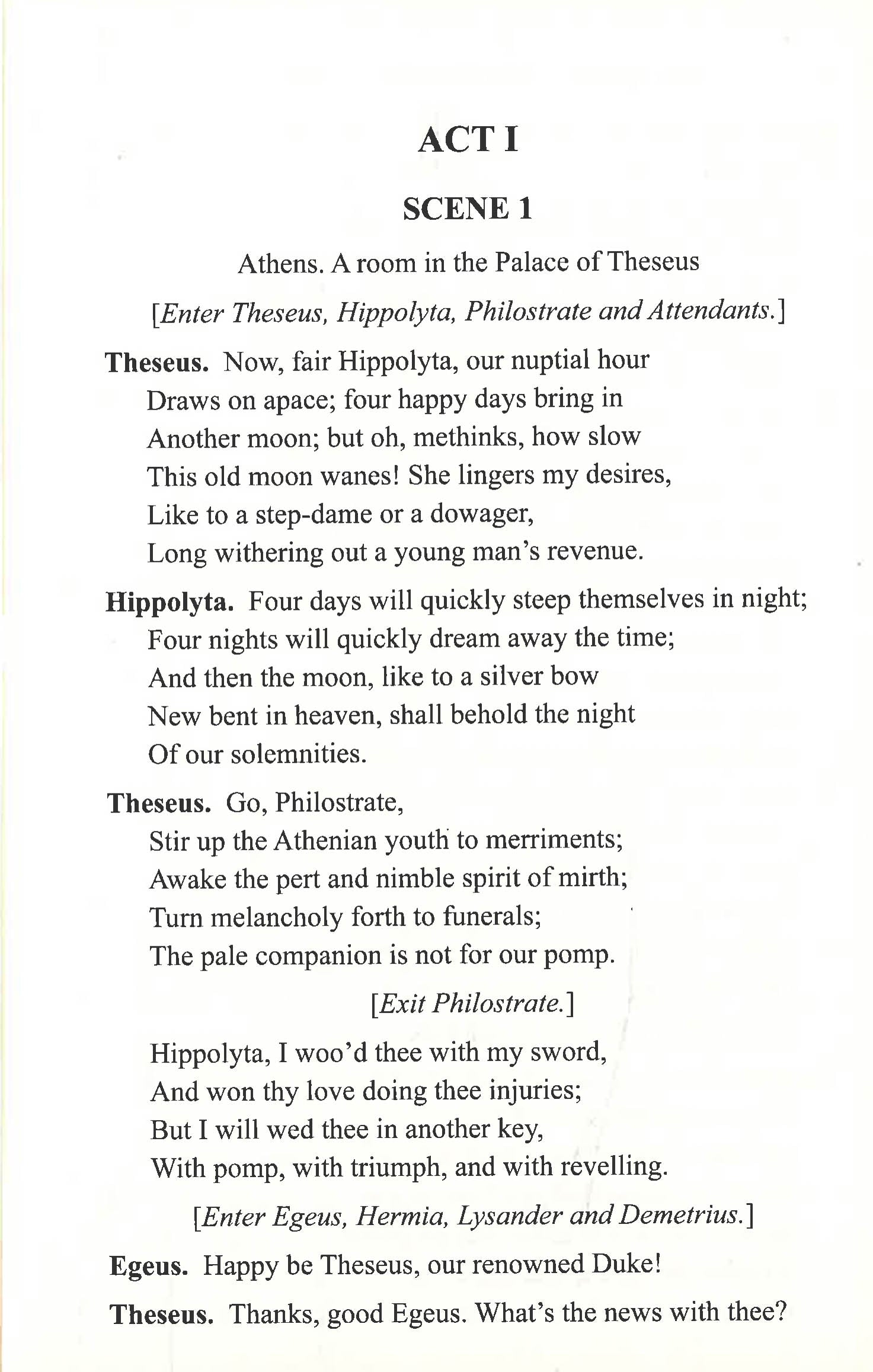 A comedy written by William Shakespeare in 1595/96. The play consists of multiple subplots that revolve around the marriage of Theseus and Hippolyta. One subplot revolves around a conflict between four Athenian lovers, one about a group of six amateur actors who have to act out their interpretation of the play 'Pyramus and Thisbe' at the wedding of Theseus and Hippolyta. These subplots take place in a forest, inhabited by fairies who control the characters of the play. The play is one of Shakespeare's most popular works for the stage and is widely performed across the world