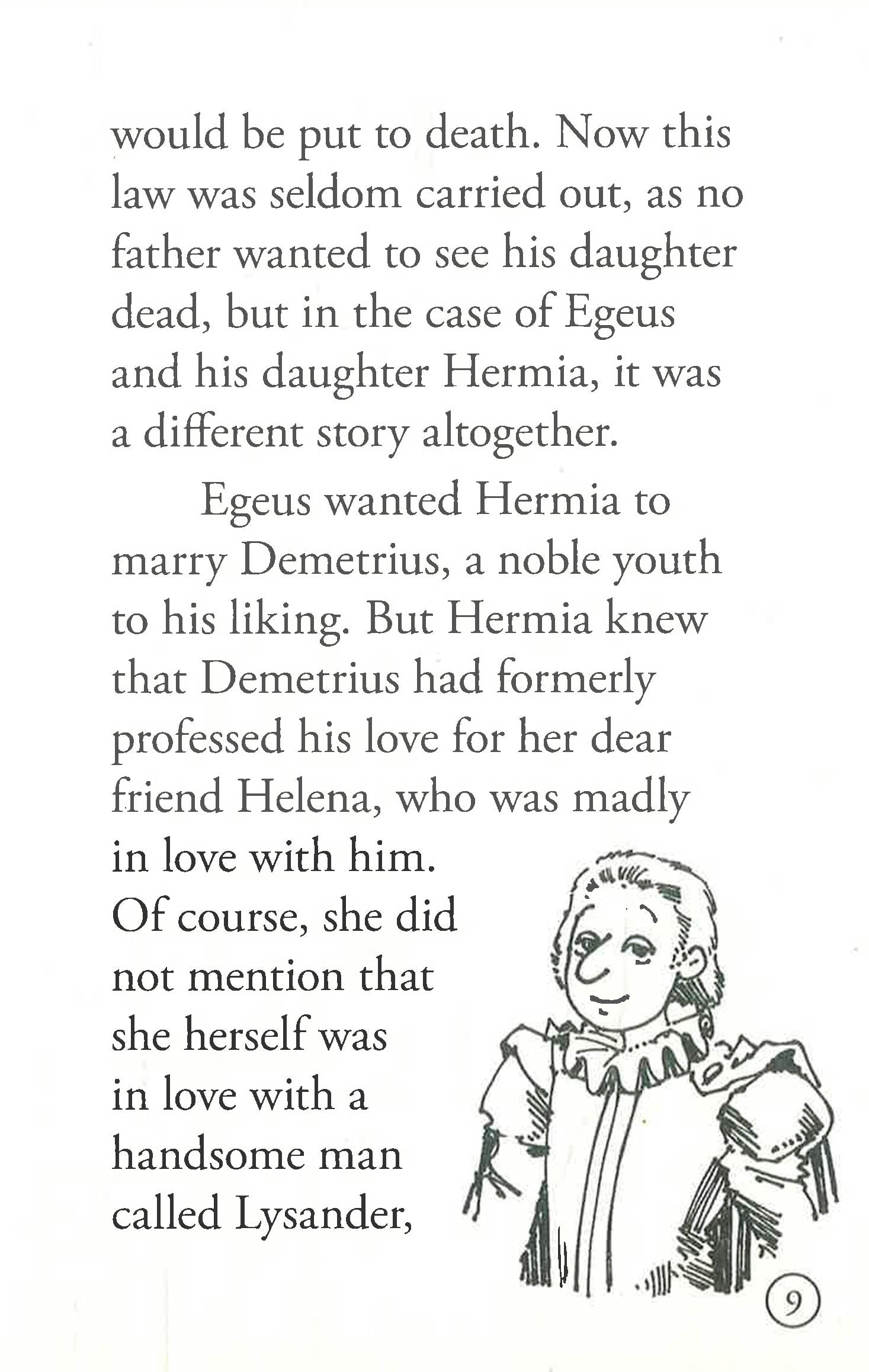 A Midsummer Night's Dream is one of the most popular comedies by Shakespeare. Just as confusing, and equally as entertaining, the play revolves around Hermia and her best friend, Helena. Hermia runs away into the woods with her lover, Lysander. Demetrius, the man of her father's choice, then follows them. Helen, being in love with him, follows Demetrius. In the woods however, they come across Oberon and Titania, King and Queen of the Fairies, where much confusion is created when Puck, one of the fairies, causes havoc with a love potion.