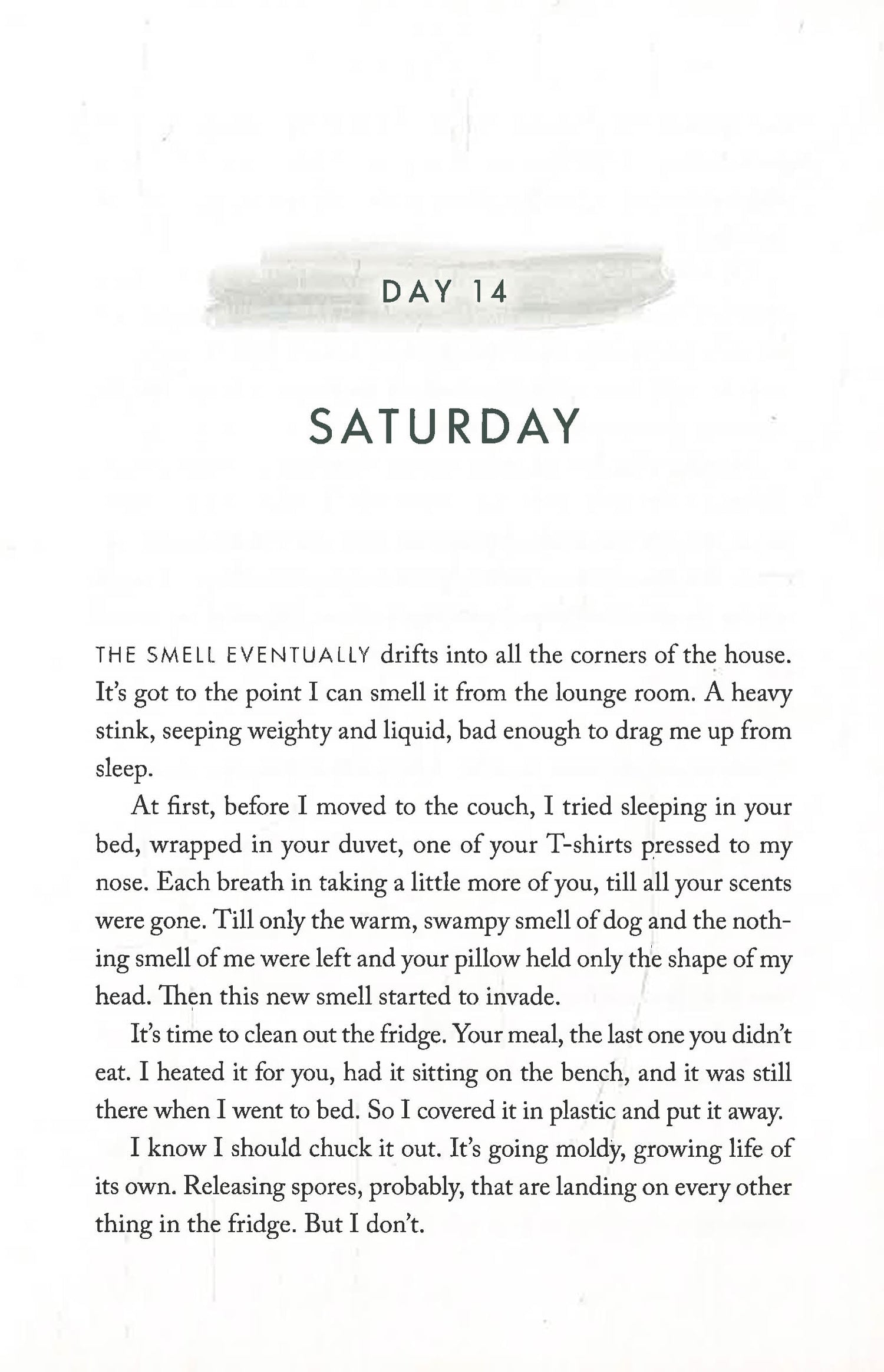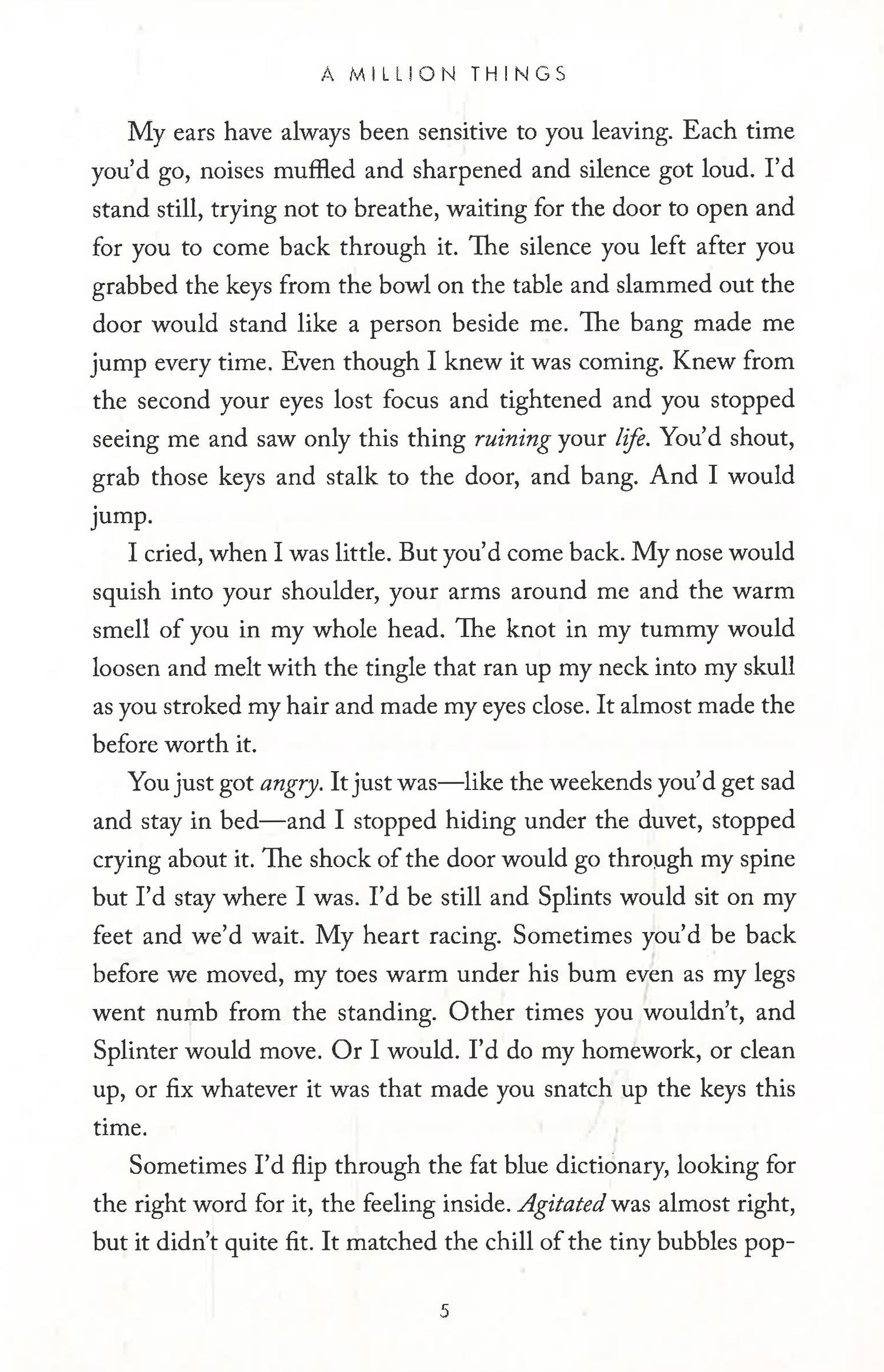 So, when Rae wakes to Splinter's nose in her face, the back door open, and no Mum, she does as she's always done and carries on. She tends to the house, goes to school, walks Splinter, and minds her own business--all the while pushing down the truth she isn't ready to face.