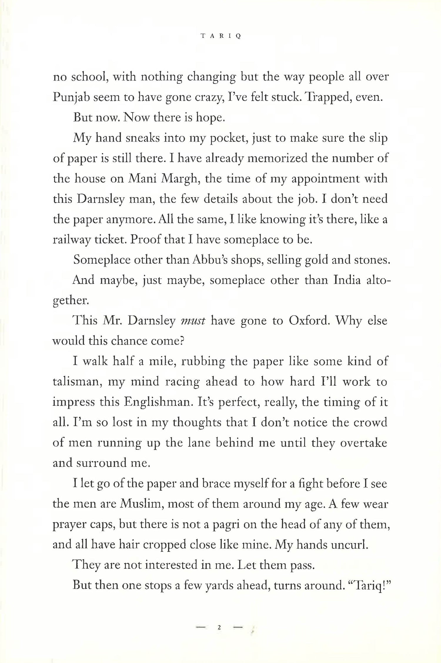 Before India was divided, three teens, each from wildly different backgrounds, cross paths. And then, in one moment, their futures become irrevocably intertwined. Tariq. Anupreet. Margaret. As different as their Muslim, Sikh, and British names. But in one moment, their futures become entirely dependent on one another's. While the rest of India anxiously awaits the upcoming partition that will divide the country into two separate religious states, eighteen-year-old Tariq focuses on his own goal: to study at Oxford. But for a Muslim born and raised in India, there is no obvious path to England-until Tariq is offered a job translating for one of the British cartographers stationed in India, tasked with establishing the new borders. Margaret, the cartographer's daughter, has only just arrived in India. But already she has discovered it to be hot, loud, and dull. She can't go anywhere alone for fear of the riots and violence. Eager for a distraction, she finds one in Tariq. But it's Anupreet, another member of the staff, who has truly captured Tariq's eye. She's strikingly beautiful - but she's a Sikh, so not someone Tariq should even be caught looking at. And yet he's compelled to... Against the backdrop of the nearly forgotten history of the partition of India, Jennifer Bradbury, as if with strands of silk, weaves together the heart-pounding tale of three teenagers on wildly different paths, on the verge of changing each other's lives forever.