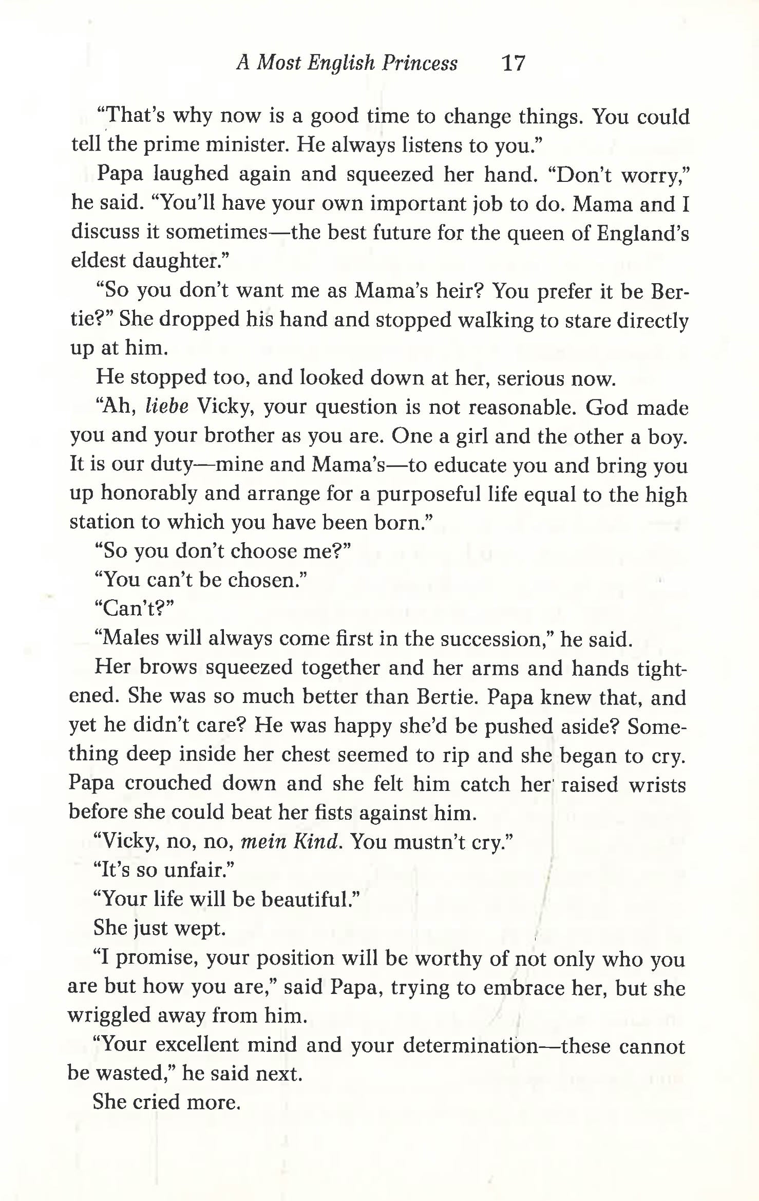 To the world, she was Princess Victoria, daughter of a queen, wife of an emperor, and mother of Kaiser Wilhelm. Her family just called her Vicky...smart, pretty, and self-assured, she changed the course of the world.