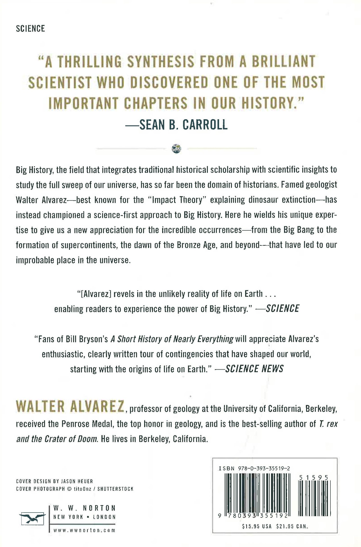 Big History, the field that integrates traditional historical scholarship with scientific insights to study the full sweep of our universe, has so far been the domain of historians. Famed geologist Walter Alvarez―best known for the “Impact Theory” explaining dinosaur extinction―has instead championed a science-first approach to Big History. Here he wields his unique expertise to give us a new appreciation for the incredible occurrences―from the Big Bang to the formation of supercontinents, the dawn of the Bronze Age, and beyond―that have led to our improbable place in the universe.