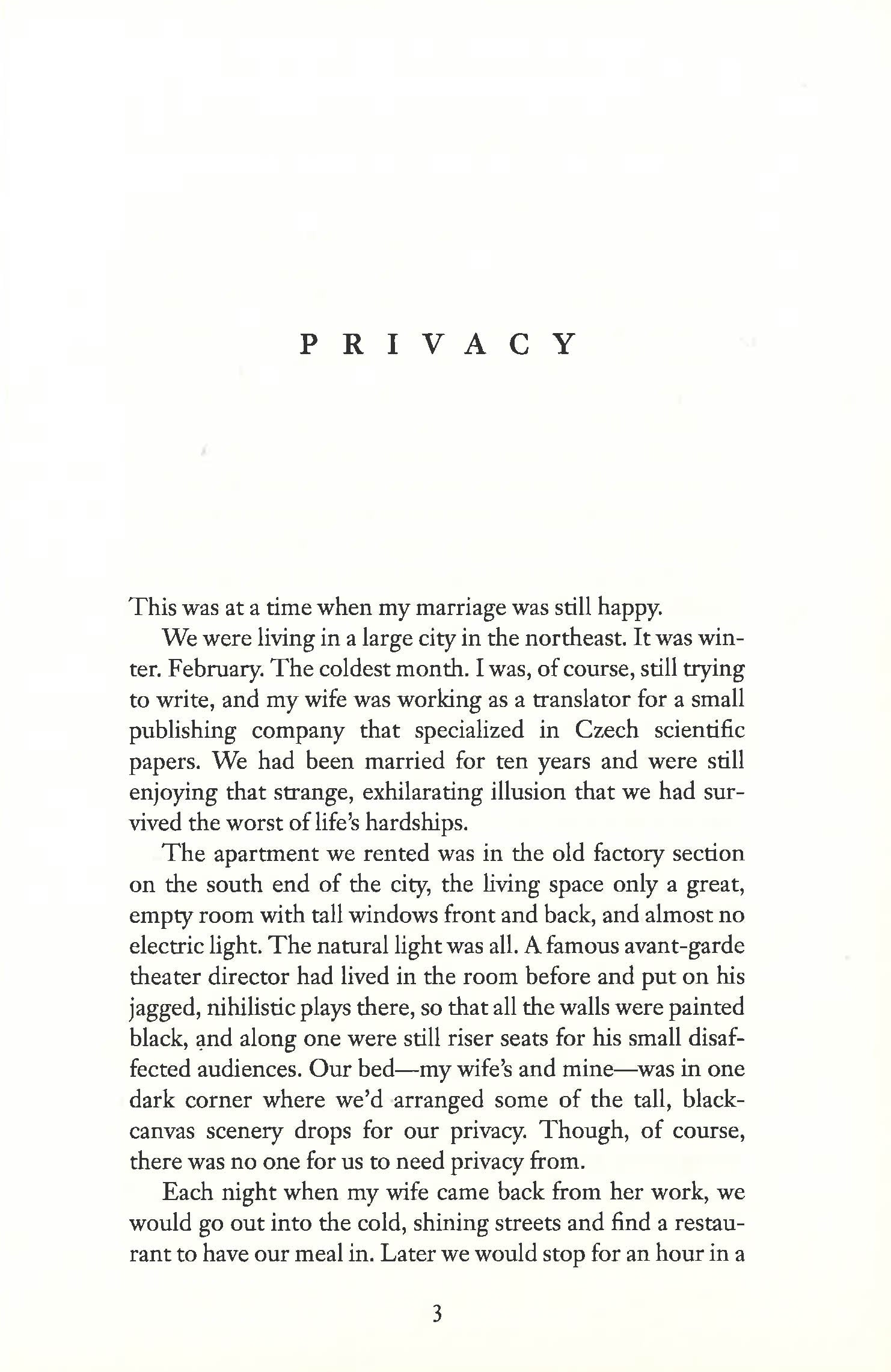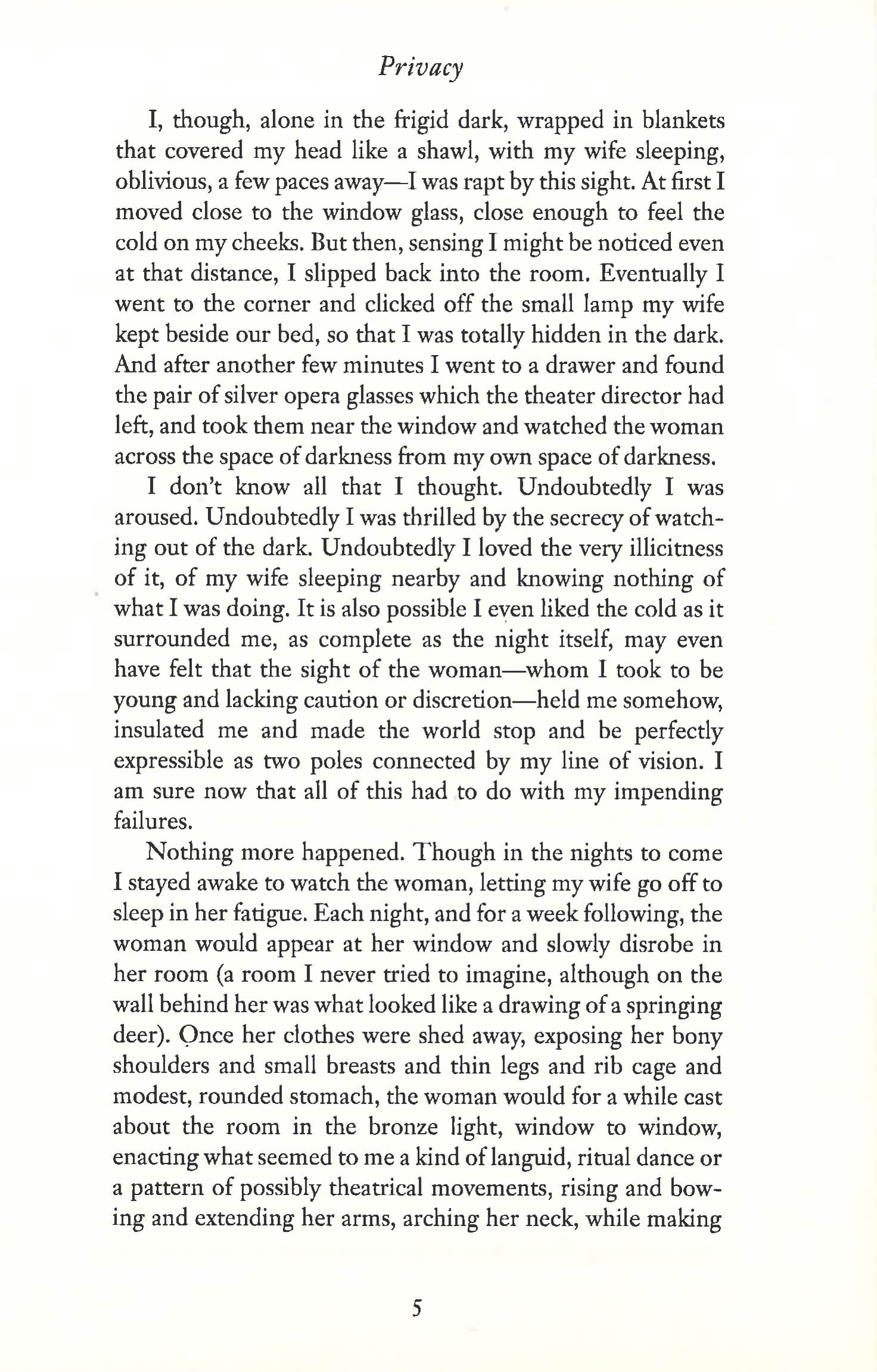 In each of these tales, master storyteller Richard Ford is drawn to the themes of intimacy, love, and their failures. An illicit visit to the Grand Canyon reveals a vastness even more profound; an exacting career woman celebrates Christmas with her adamantly post-nuclear family; a couple weekending in Maine try to recapture the ardour that has disappeared, both gradually and suddenly, from their lives; on a spring evening's drive, a young wife confesses to her husband the affair she had with the host of the dinner party they're about to join.