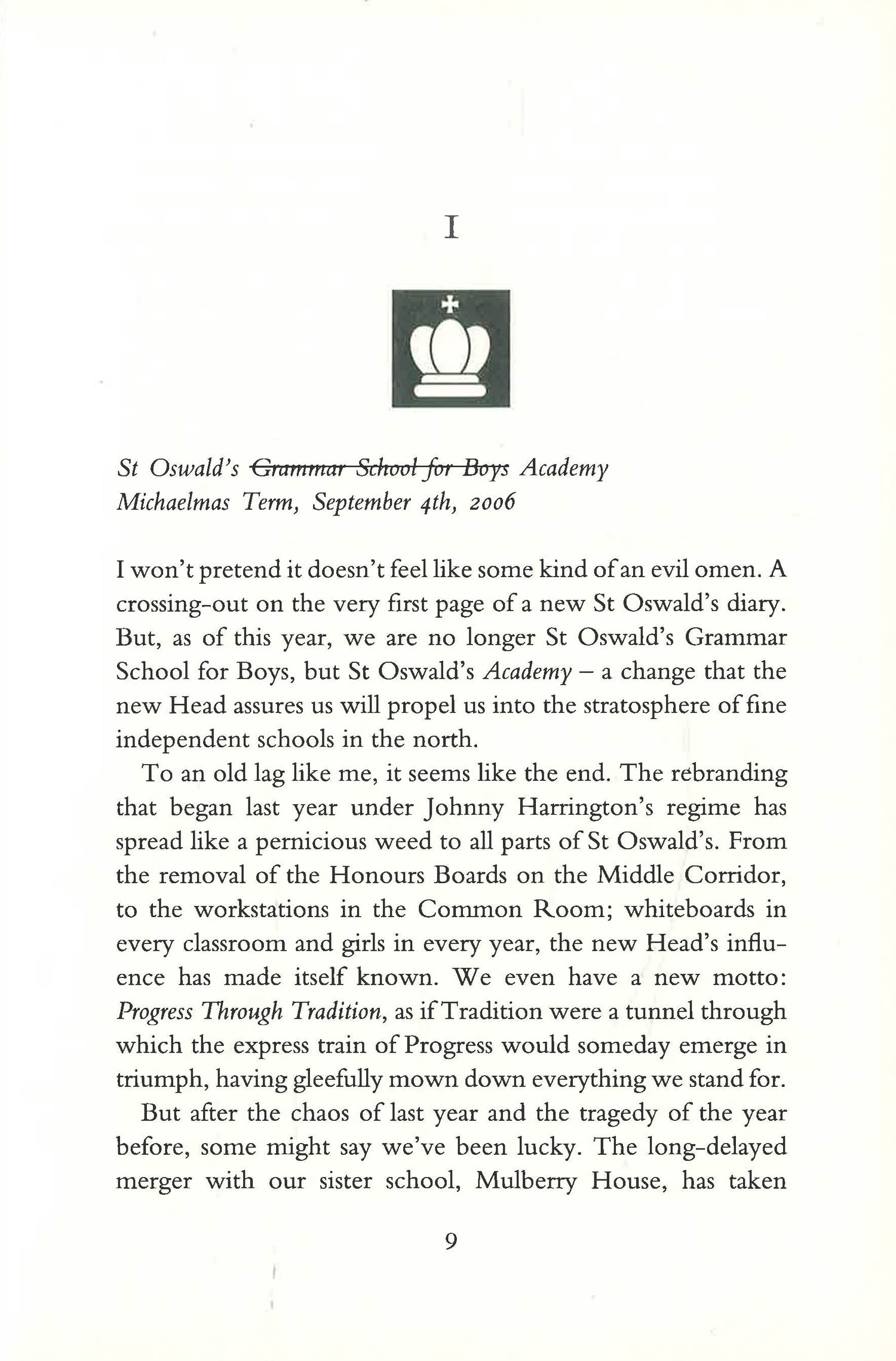 It's an incendiary moment for St Oswald's school. For the first time in its history, a headmistress is in power, the gates opening to girls.