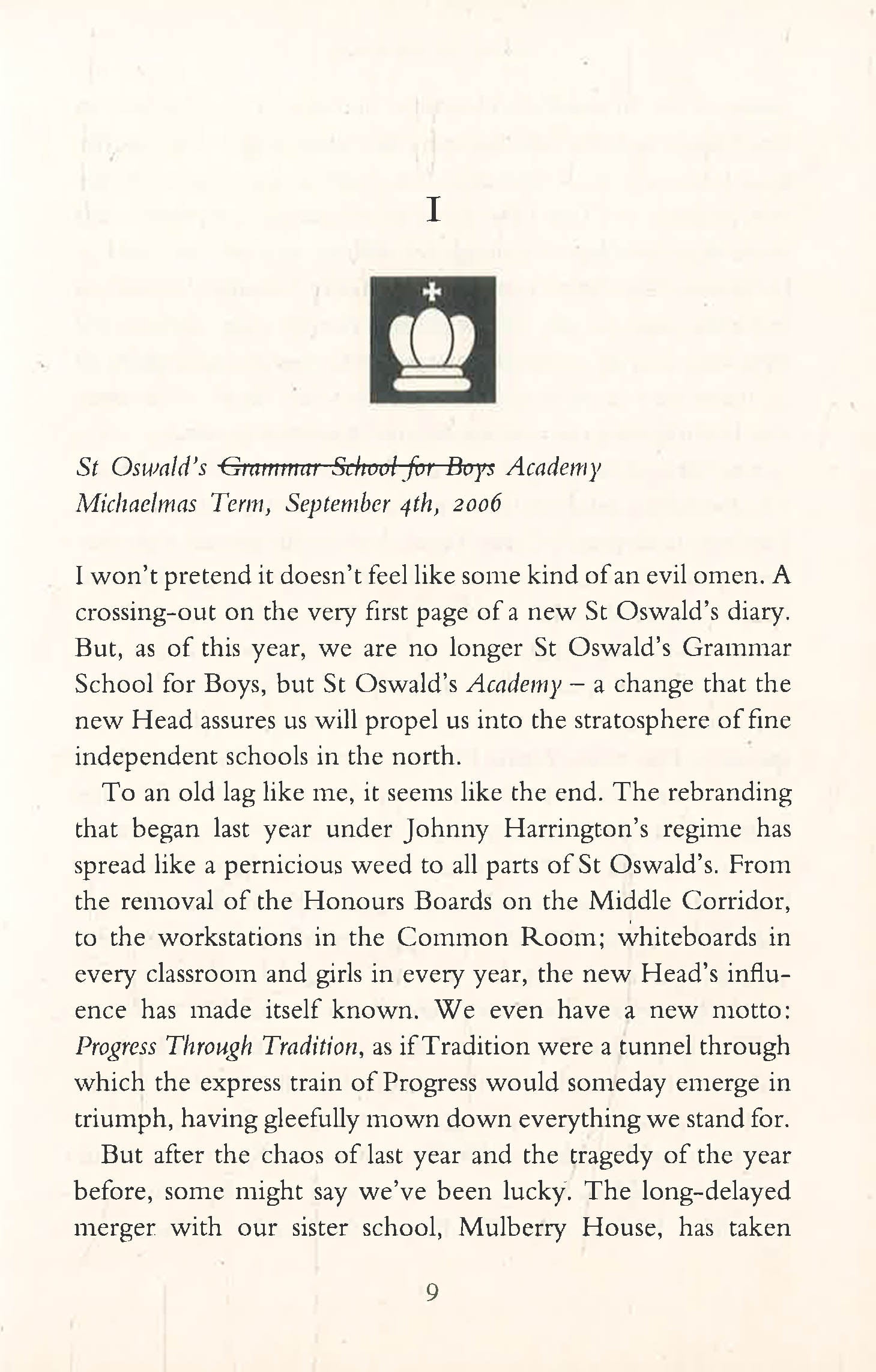 It's an incendiary moment for St Oswald's school. For the first time in its history, a headmistress is in power, the gates opening to girls.