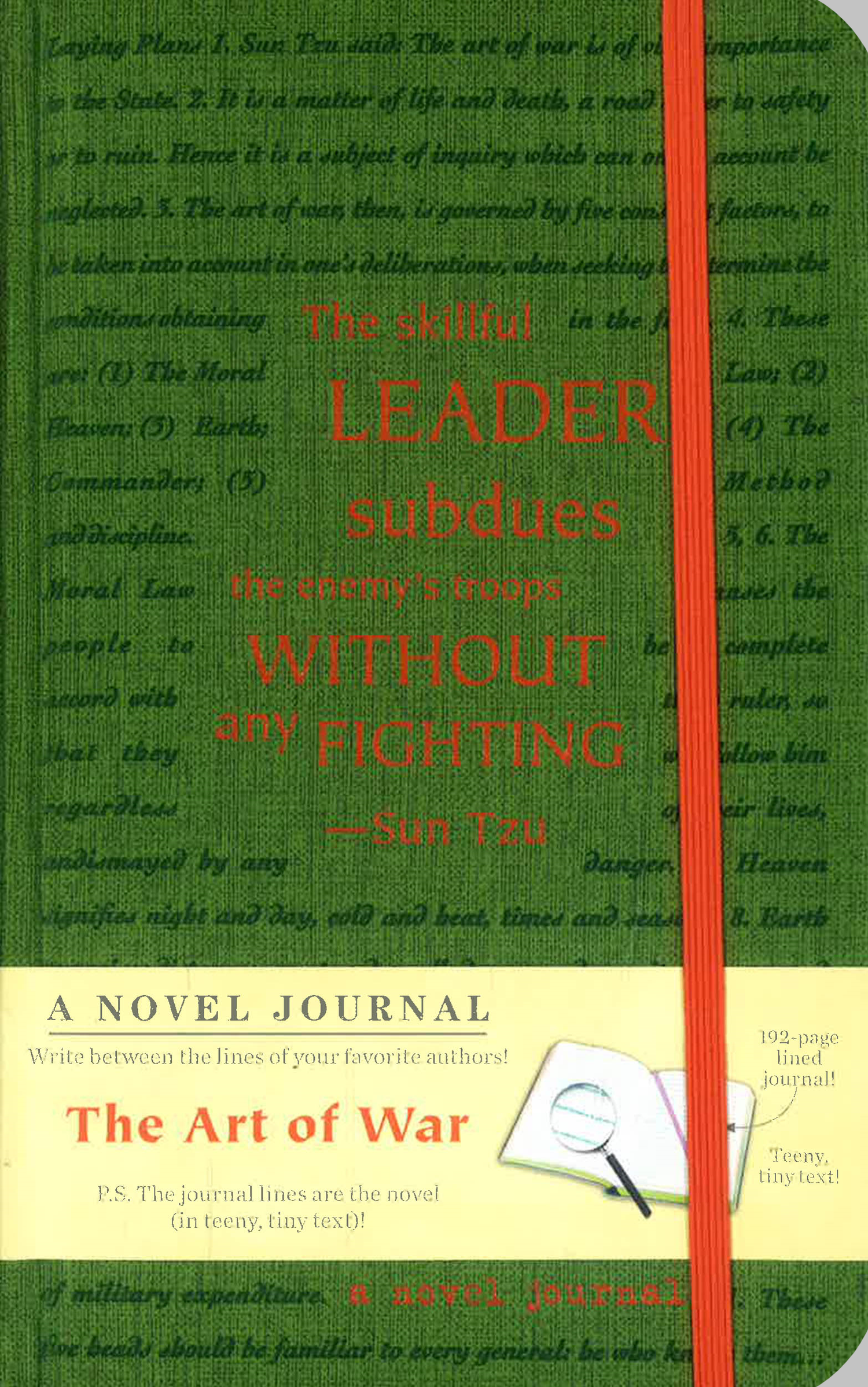 A Novel Journal: The Art of War infuses new life into a military heirloom by inviting writers to pen their own ideas between the lines of a time-honored book. The entirety of The Art of Warand a later version with commentary by British Museum expert Lionel Giles form the lines of this journal in tiny type.