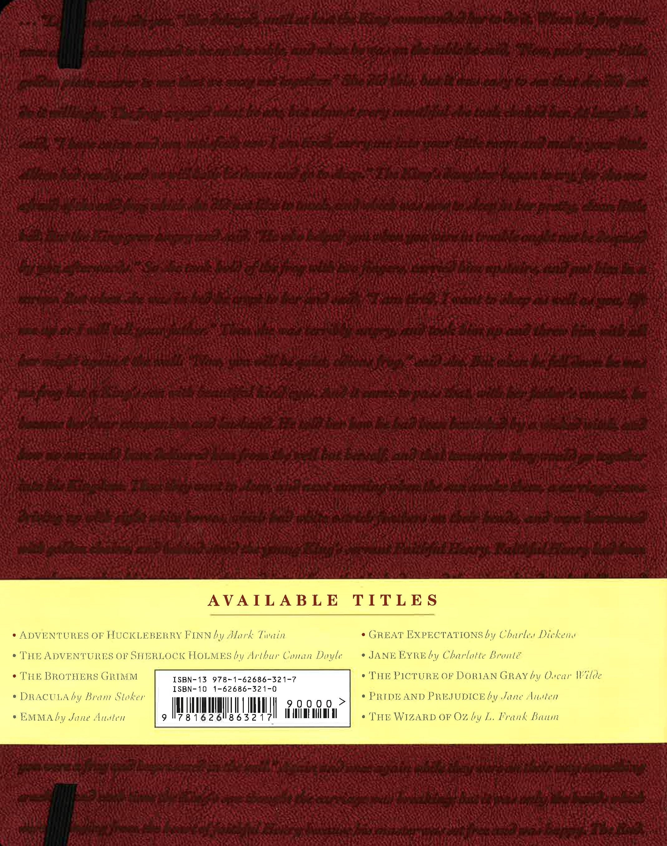 Famous for creating cultural heirlooms like ?Snow White,? ?Cinderella,? and ?The Frog Prince,? the words of the 18th and 19th century German authors Jacob and Wilhelm Grimm will further inspire new storytellers in A Novel Journal: Brothers Grimm. With the tales of this talented duo in tiny font serving as the lines of this journal, writers can rest assured that their pages are graced with greatness.