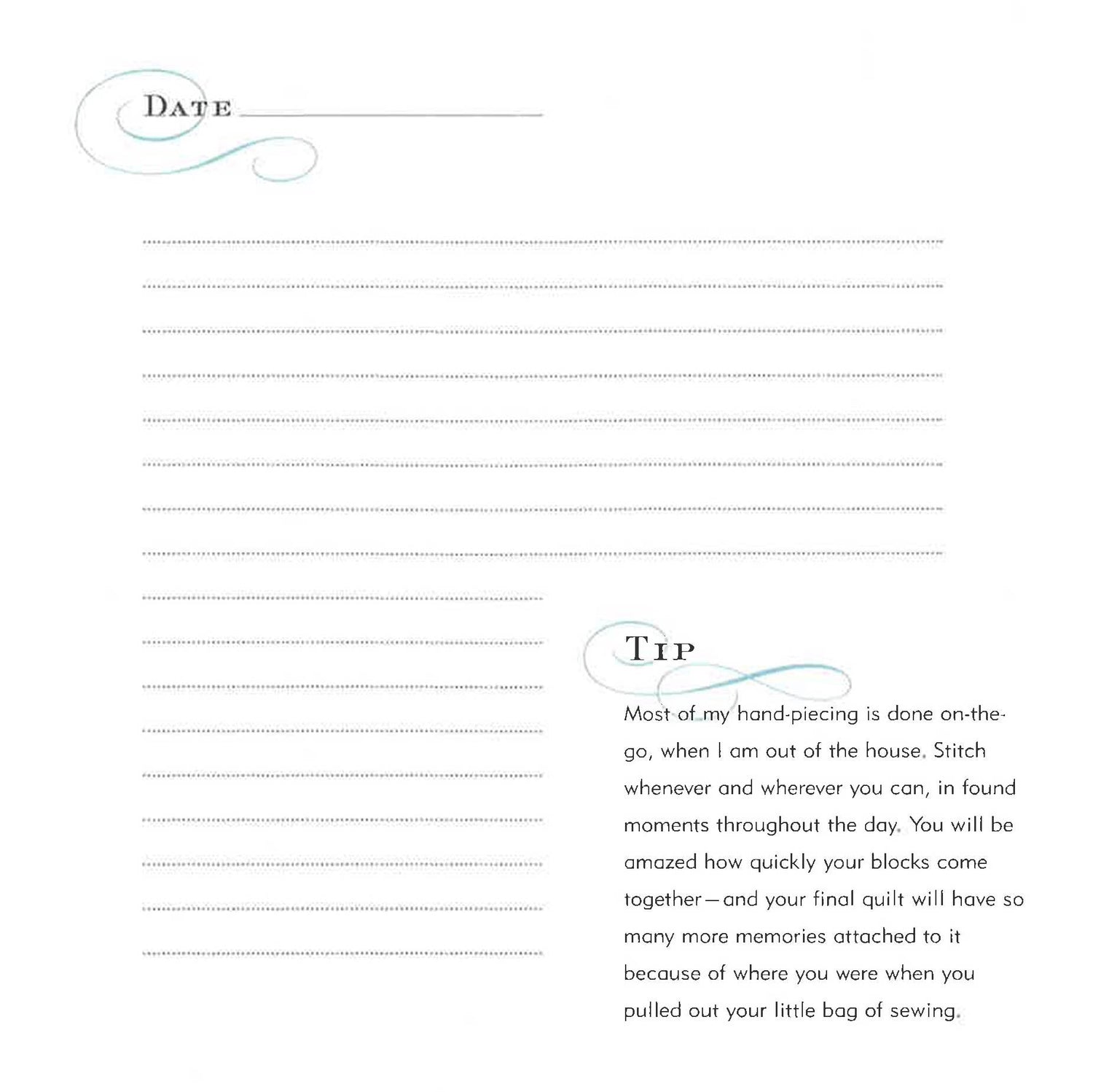 Quilting tips, motivational quotes, and elegant drawings adorn this journal designed for quilting enthusiasts to record their thoughts, ideas, and inspirations about the art form and their lives. Grid paper is included for sketching out original patchwork designs and redrafting patterns to different scales. The format and portable size make this a constant companion for avid quilters and a perfect gift for quilting friends.