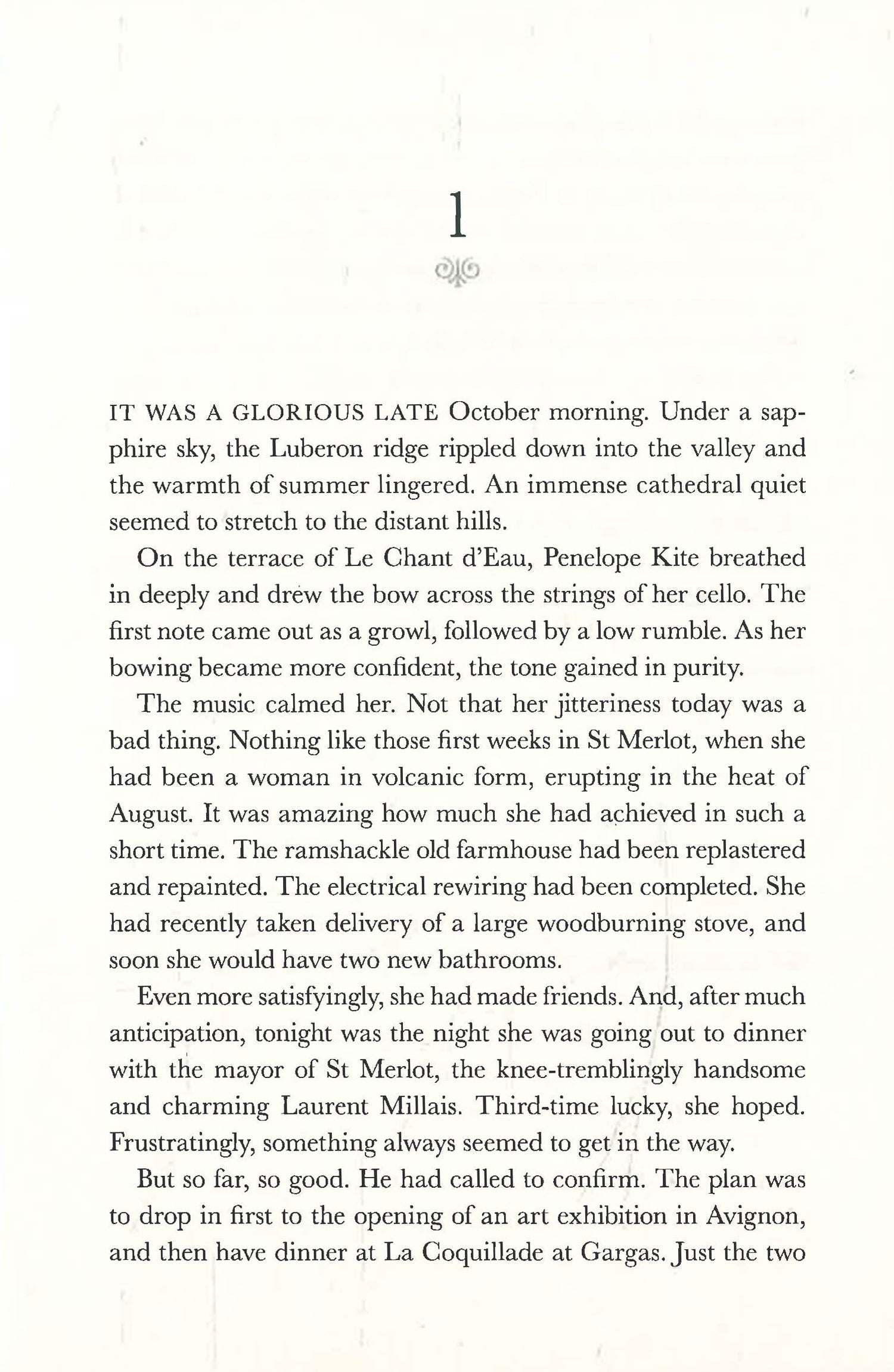 After an eventful first few months in Provence, it seems Penelope is finally settling into her delightful new life, complete with a gorgeous love interest in the mayor of St. Merlot.