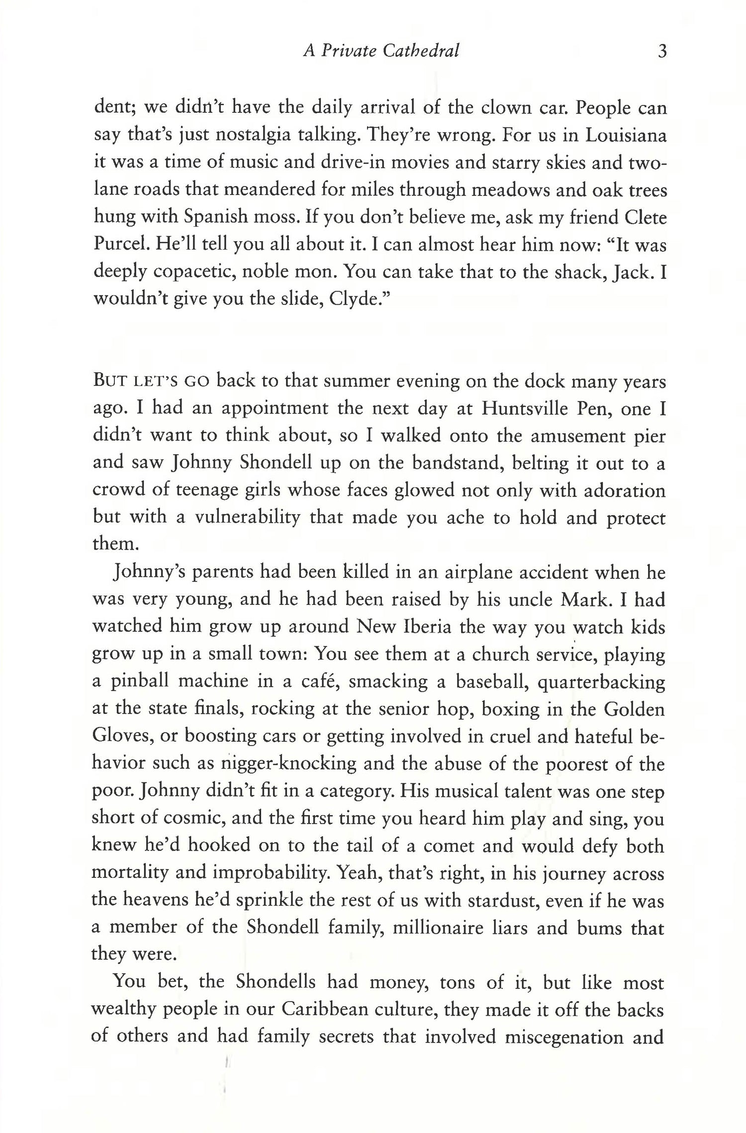 The Shondell and Balangie families are longtime enemies in the New Iberia criminal underworld and show each other no mercy. Yet their youngest heirs, Johnny Shondell and Isolde Balangie, rock and roll-musician teenagers with magical voices, have fallen in love and run away after Isolde was given as a sex slave to Johnny’s uncle.