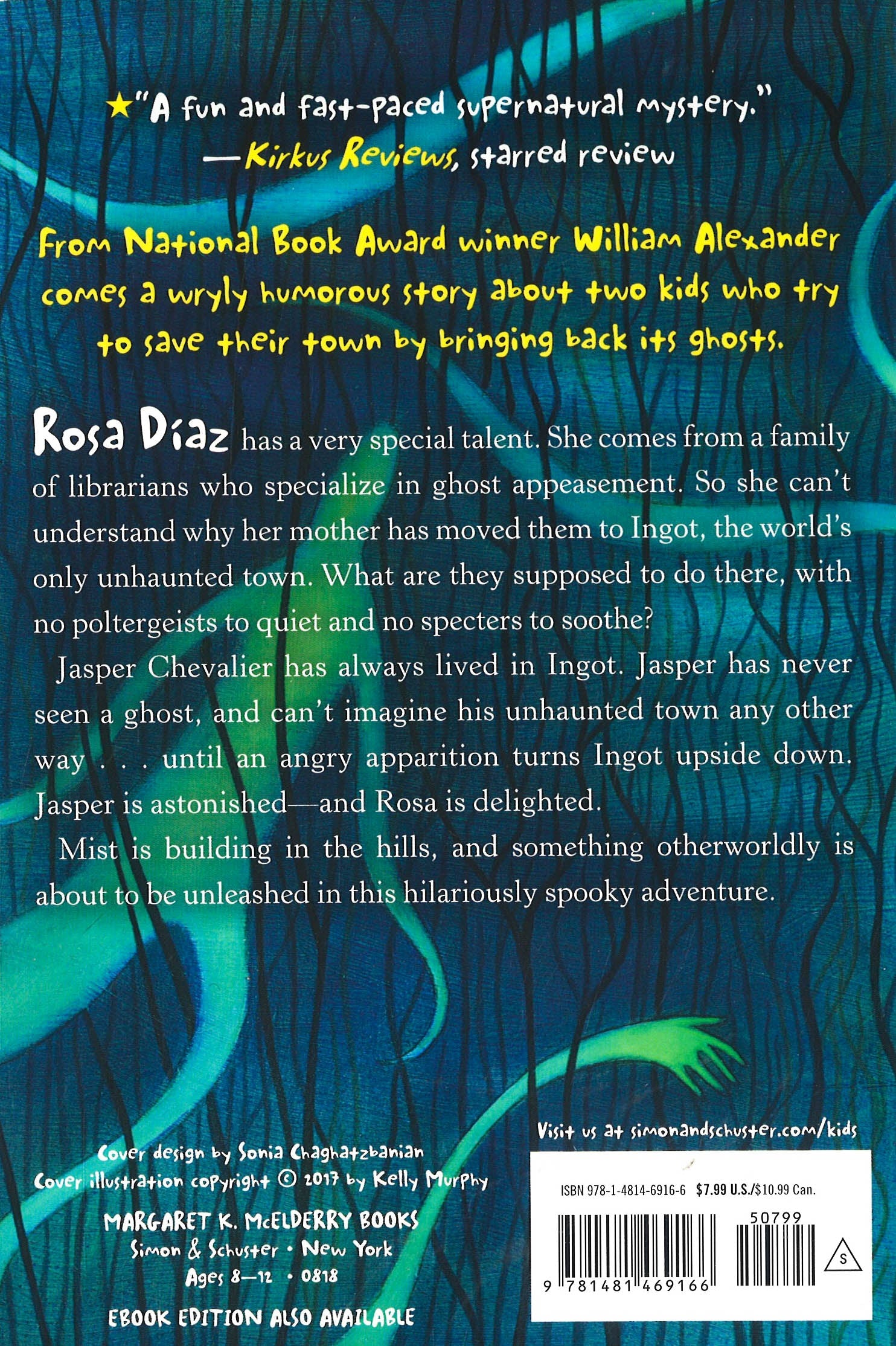 Rosa Ramona Díaz has a very special talent. She comes from a family of librarians who specialize in ghost appeasement. So she can’t understand why her mother has moved them to Ingot, the world’s only unhaunted town. What are they supposed to do there, with no poltergeists to quiet and no specters to soothe? Frankly, Rosa doesn’t think anyone should want to live in a place where the biggest attraction is a woefully inaccurate Renaissance Festival. But Jasper Chevalier has always lived in Ingot, working at the festival while his parents hold court. Jasper has never seen a ghost, and can’t imagine his unhaunted town any other way…until an angry apparition thunders into the fairgrounds and turns Ingot upside down. Jasper is astonished…and Rosa is delighted. Mist is building in the hills, and something otherworldly is about to be unleashed. Rosa will need all her ghost appeasement tools—and a little help from Jasper—to try to rein in the angry ghosts in this hilariously spooky adventure.