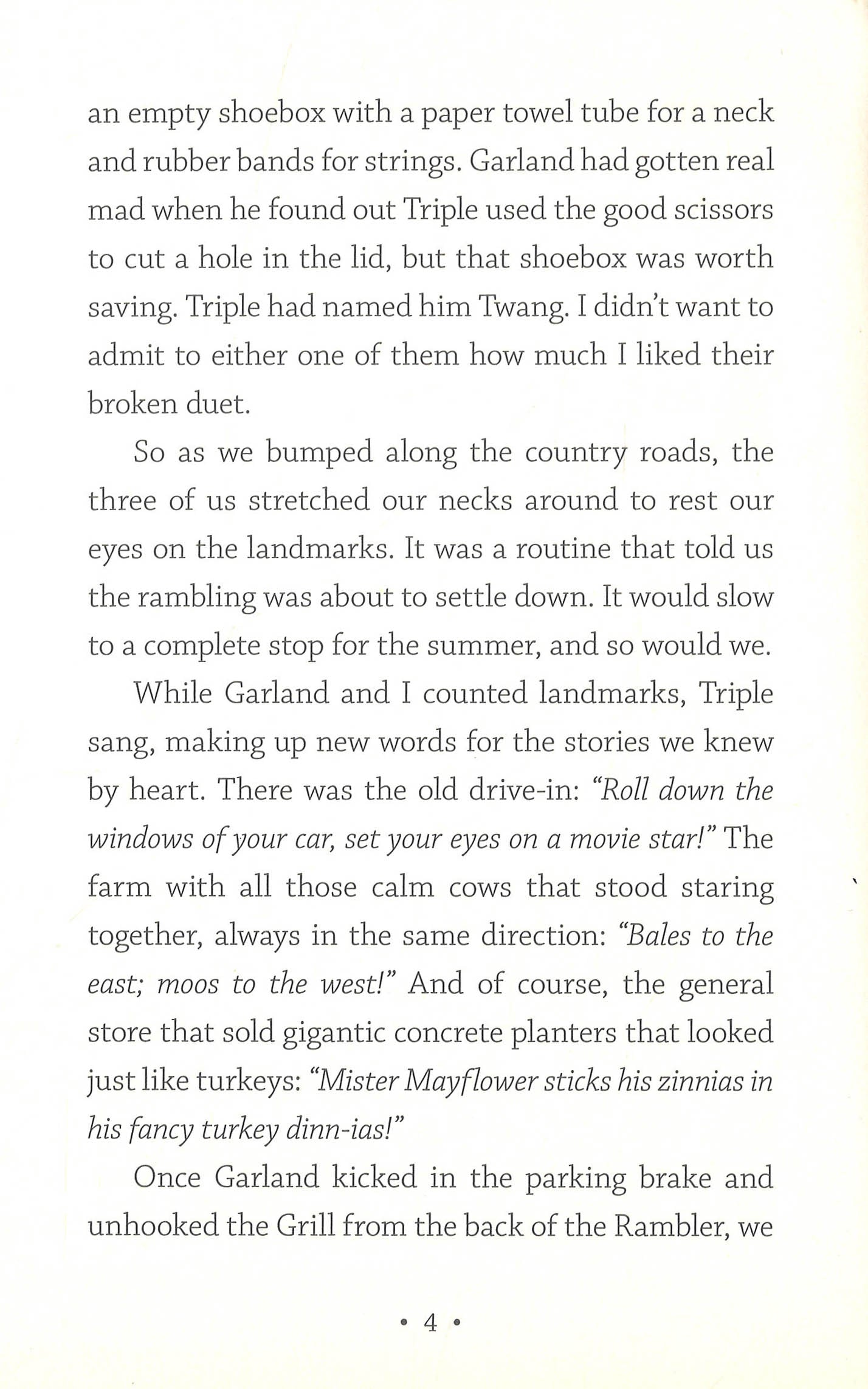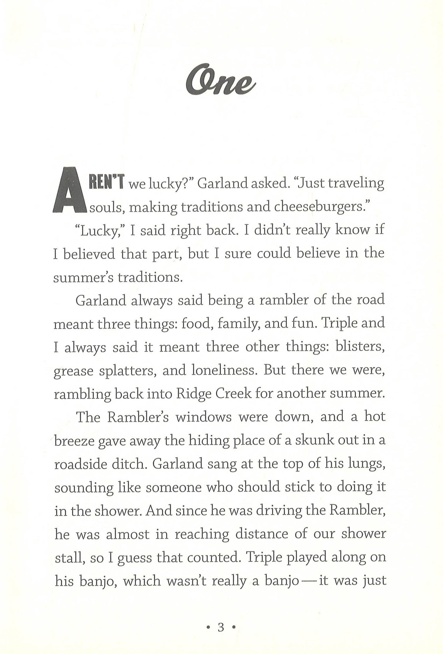 Garland, Derby, and Triple Clark spend each season traveling highways and byways in their Rambler--until summer, when small-town Ridge Creek, Virginia, calls them back. There they settle in, selling burgers and fries out of Garland's Grill after each game the Rockskippers play in their battered minor-league baseball stadium. Derby's summer traditions bring her closer than she's ever been to a real home that isn't on wheels, but this time, her return to Ridge Creek reveals unwelcome news. Now the person Derby loves most in town needs her help--and yet finding a way to do so may uncover deeply held stories and secrets. Told in Derby's unforgettable voice, this warm-hearted debut novel is about taking risks, planting roots, and discovering the true definition of home.