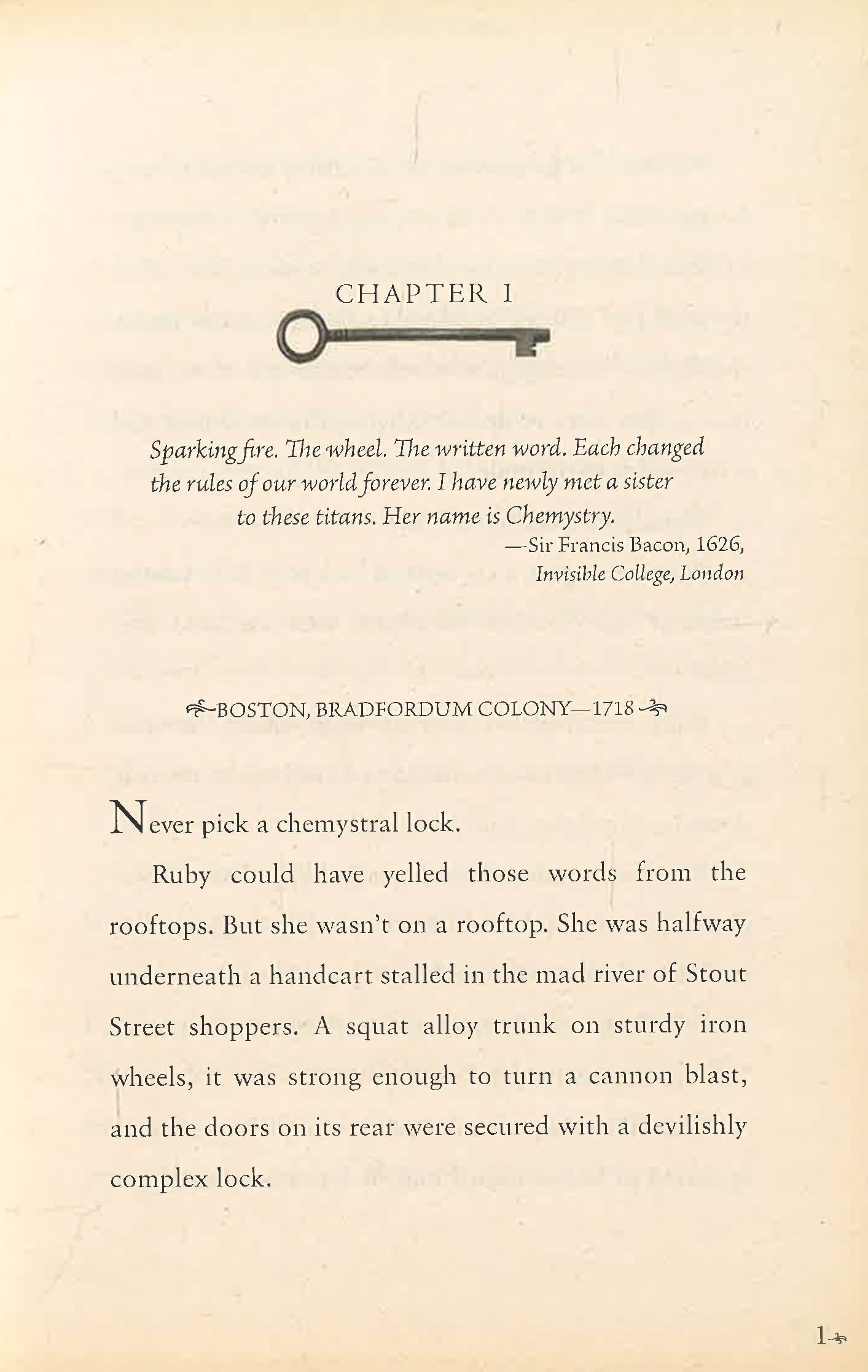 Ruby Teach, daughter of a smuggler and pirate, has been learning how to swindle and steal and pick the most complex locks for as long as she can remember. But a collision with aristocratic young lord Athen sends her spinning into chaos. Little did she know that her whole life has been spent in hiding from nefarious secret societies and the Royal Navy . . . who are both now on her trail. In this debut middle grade adventure, Kent Davis weaves a rip-roaring tale through an alternate colonial Philadelphia. A world where alchemy--that peculiar mix of magic and science--has fueled the industrial revolution. With this highly original setting, a cast of fully rounded characters and rapid-fire, funny dialogue, A Riddle in Ruby will call to mind fantasy greats like Diana Wynne Jones and Terry Pratchett.