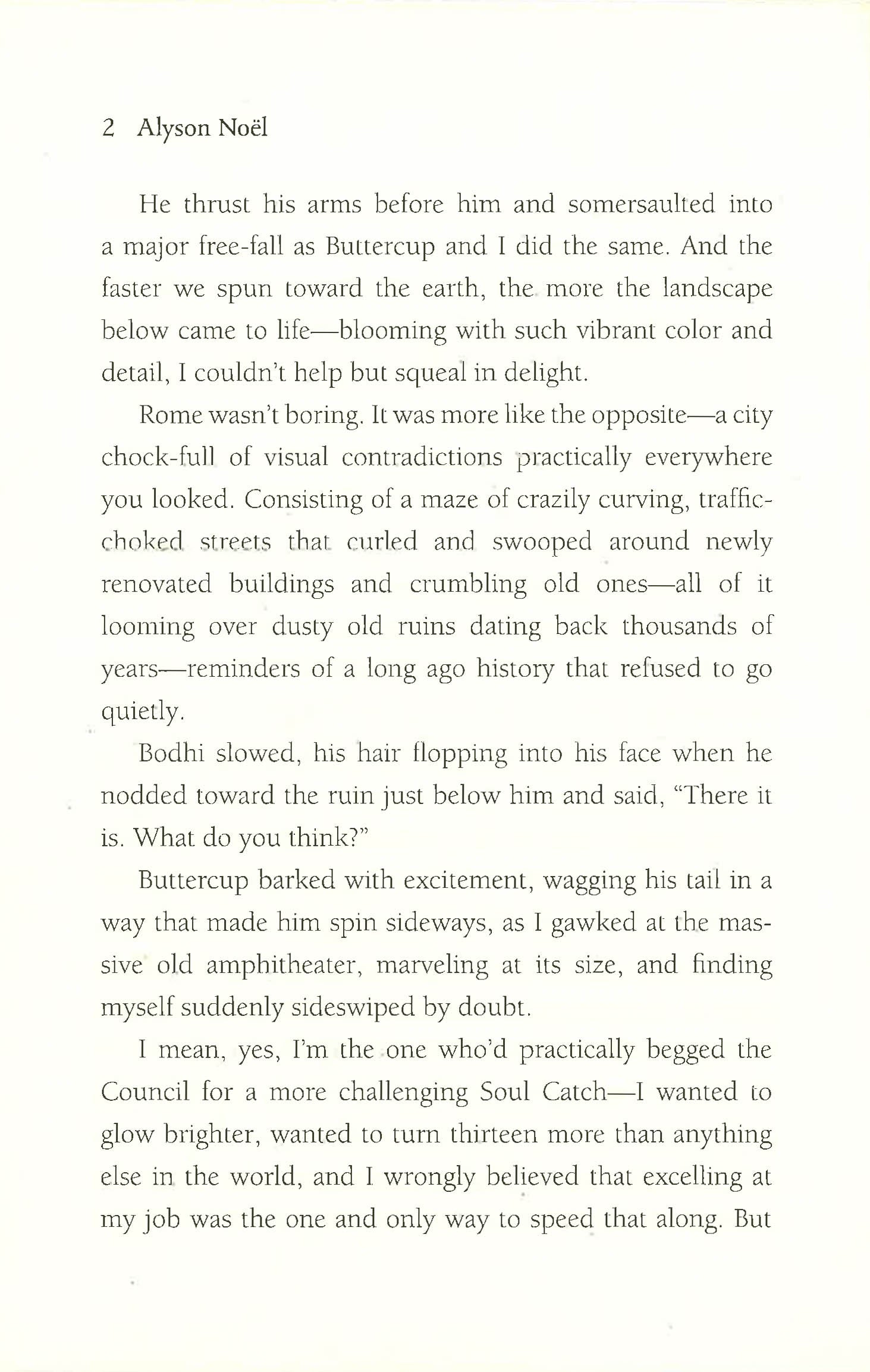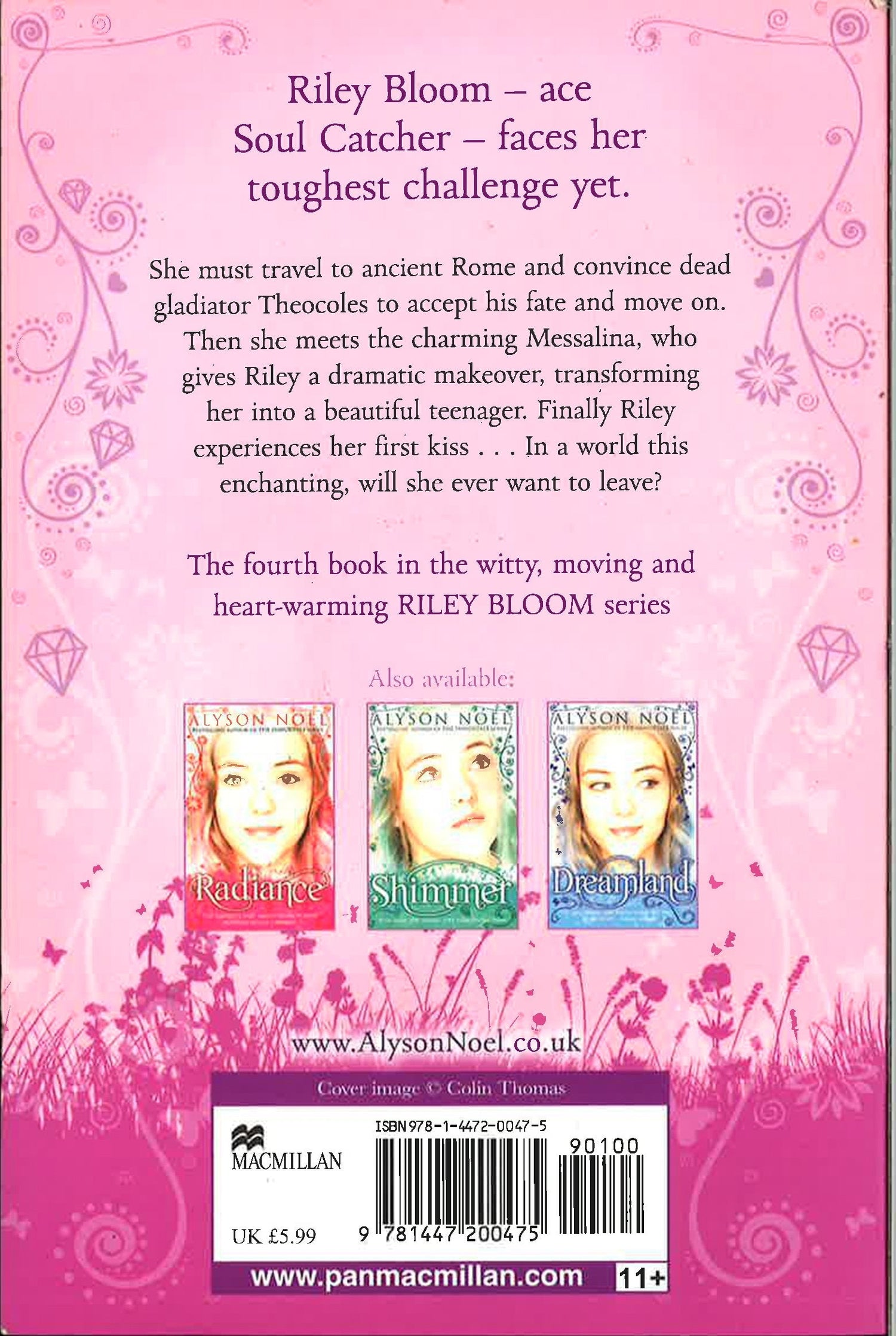 He looked at me in a way that I'd never been looked at before . . . with intensity. Twelve-year-old Riley Bloom - ace Soul Catcher - faces her toughest challenge yet. She must travel to Ancient Rome and convince dead gladiator, Theocoles, to accept his fate and move on. Then she meets the charming Messalina, who gives Riley a dramatic makeover, transforming her into a beautiful teenager. Finally Riley experiences her first kiss . . . In a world this enchanting, will she ever want to leave?