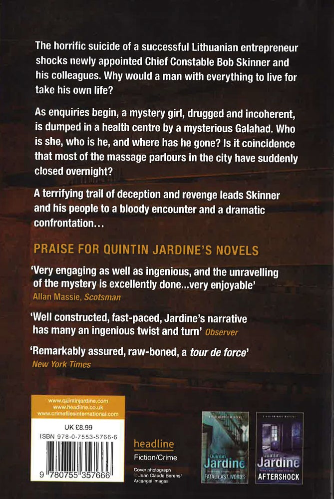 The horrific suicide of a successful Lithuanian entrepreneur rouses suspicion amongst the newly appointed Chief Constable Bob Skinner and his colleagues. They've crossed swords with the businessman before; why would a man with everything to live for take his own life? As enquiries begin, a mystery girl, drugged and incoherent, is dumped in a health centre by a mysterious Galahad, who promptly disappears. Who is she, who is he, and where has he gone? Is it coincidence that most of the massage parlours in the city have suddenly closed overnight?