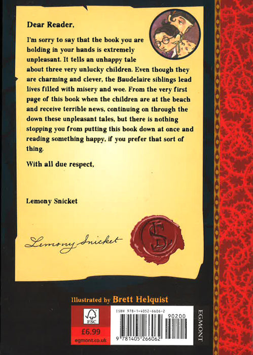 Dear reader, There is nothing to be found in Lemony Snicket's 'A Series of Unfortunate Events' but misery and despair. You still have time to choose another international best-selling series to read. But if you insist on discovering the unpleasant adventures of the Baudelaire orphans, then proceed with caution...Dear reader, There is nothing to be found in Lemony Snicket's 'A Series of Unfortunate Events' but misery and despair. You still have time to choose another international best-selling series to read. But if you insist on discovering the unpleasant adventures of the Baudelaire orphans, then proceed with caution... Violet, Klaus, and Sunny Baudelaire are intelligent children. They are charming, and resourceful, and have pleasant facial features. Unfortunately, they are exceptionally unlucky. In The Bad Beginning, the siblings encounter a greedy and repulsive villain, itchy clothing, a disastrous fire, a plot to steal their fortune and cold porridge for breakfast. In the tradition of great storytellers, from Dickens to Dahl, comes an exquisitely dark comedy that is both literary and irreverent, hilarious and deftly crafted. Despite their wretched contents, 'A Series of Unfortunate Events' has sold 60 million copies worldwide and been made into a Hollywood film starring Jim Carrey. And in the future things are poised to get much worse, thanks to the forthcoming Netflix series starring Neil Patrick Harris. You have been warned. Are you unlucky enough to own all 13 adventures? The Bad Beginning The Reptile Room The Wide Window The Miserable Mill The Austere Academy The Ersatz Elevator The Vile Village The Hostile Hospital The Carnivorous Carnival The Slippery Slope The Grim Grotto The Penultimate Peril The End And what about All the Wrong Questions? In this four-book series a 13-year-old Lemony chronicles his dangerous and puzzling apprenticeship in a mysterious organisation that nobody knows anything about: 'Who Could That Be at This Hour?' 'When Did you Last See Her?' 'Shouldn't You Be in School?' 'Why is This Night Different from All Other Nights?' Lemony Snicket was born before you were and is likely to die before you as well. He was born in a small town where the inhabitants were suspicious and prone to riot. He grew up near the sea and currently lives beneath it. Until recently, he was living somewhere else. Brett Helquist was born in Ganado, Arizona, grew up in Orem, Utah, and now lives in New York City. He earned a bachelor's degree in fine arts from Brigham Young University and has been illustrating ever since. His art has appeared in many publications, including Cricket magazine and The New York Times.