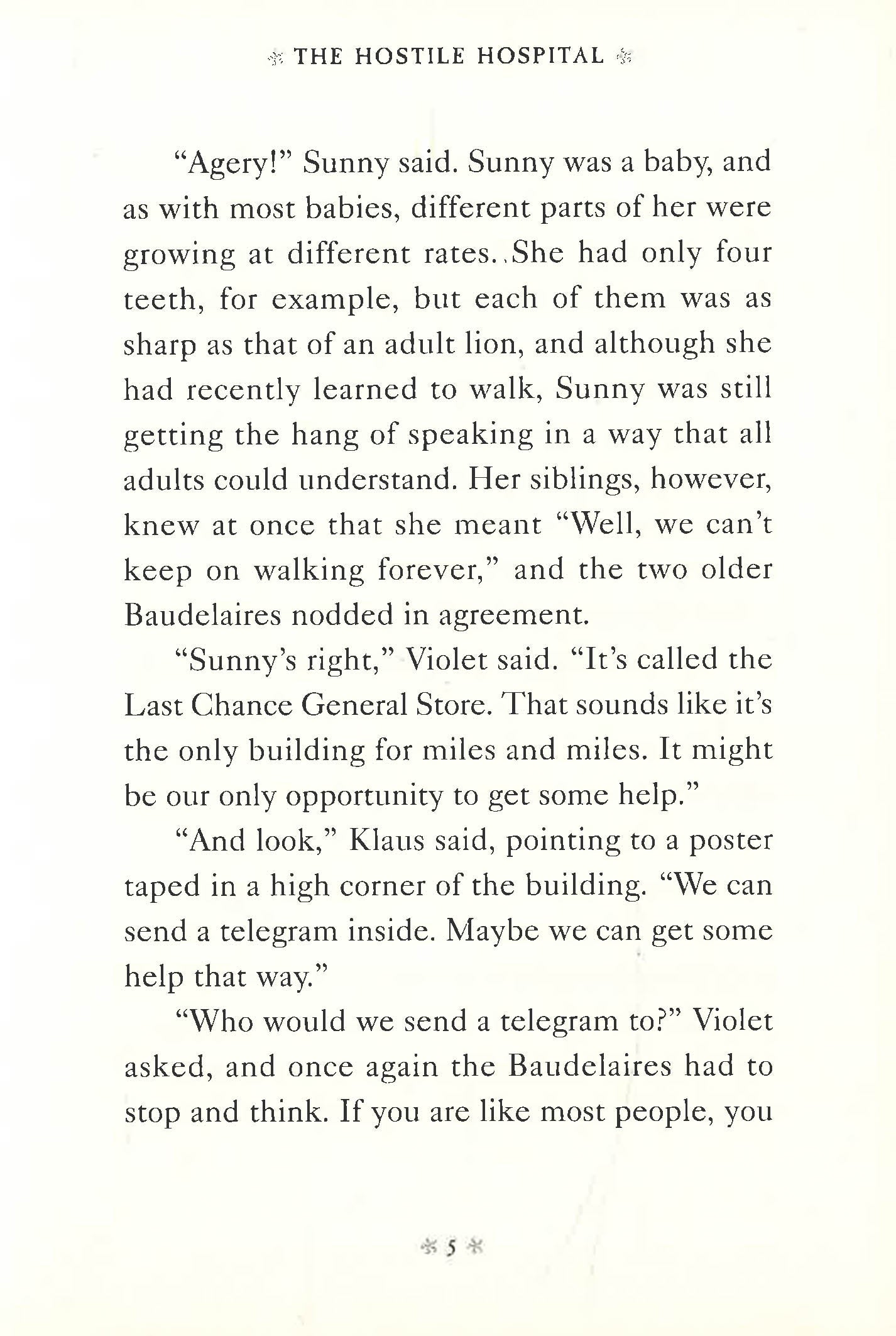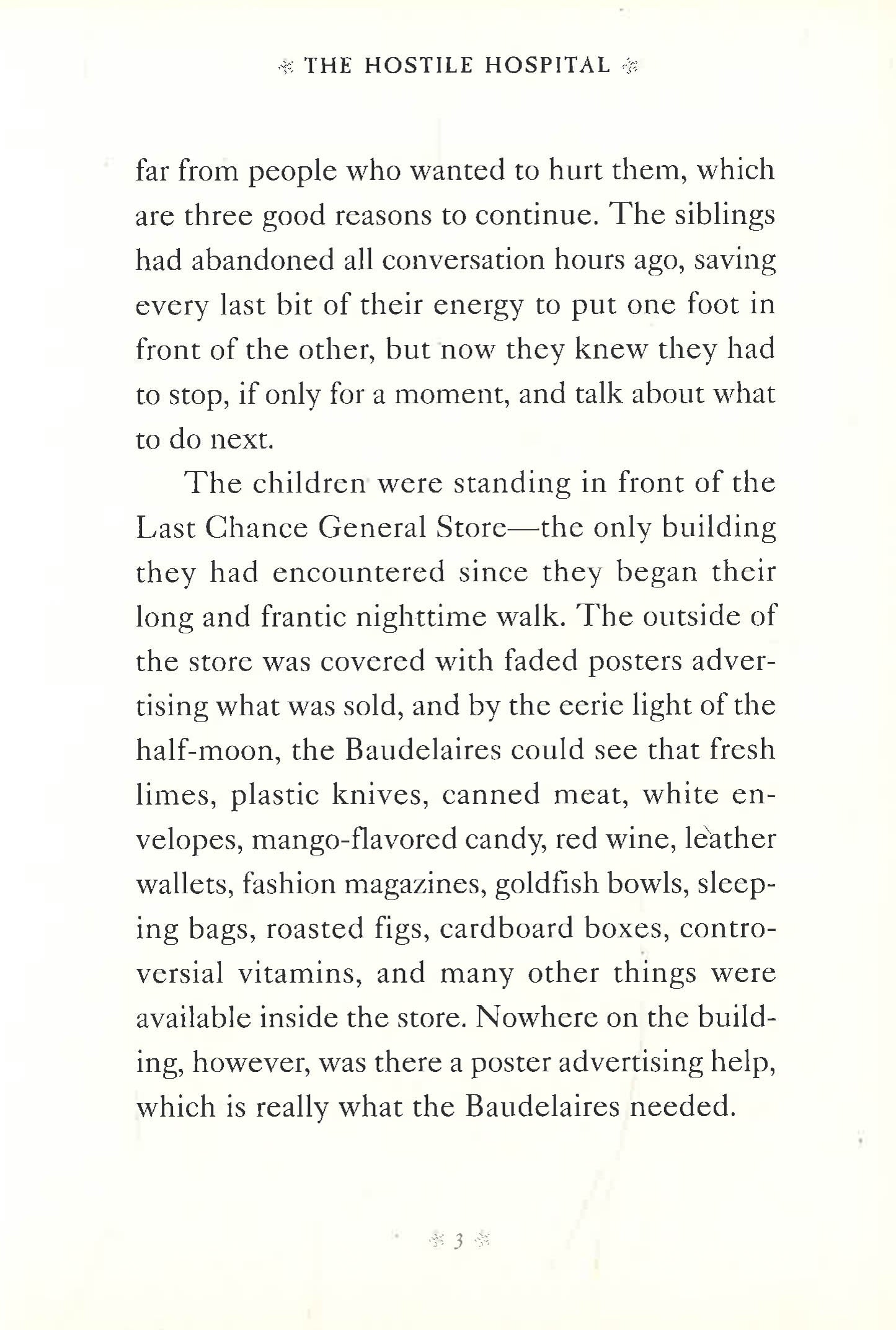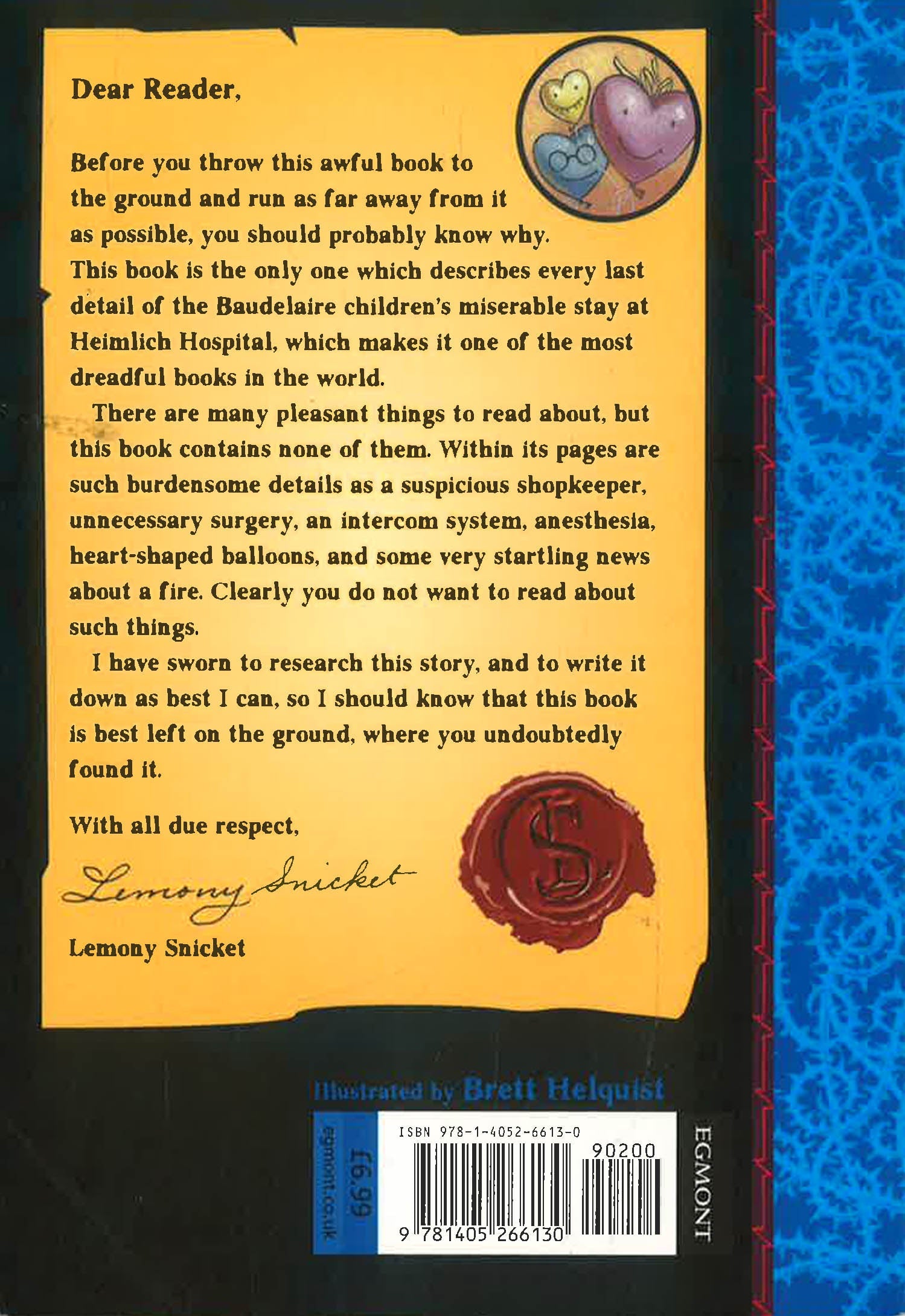 In The Hostile Hospital the siblings face a suspicious shopkeeper, unnecessary surgery, heart-shaped balloons, and some very startling news about a fire.