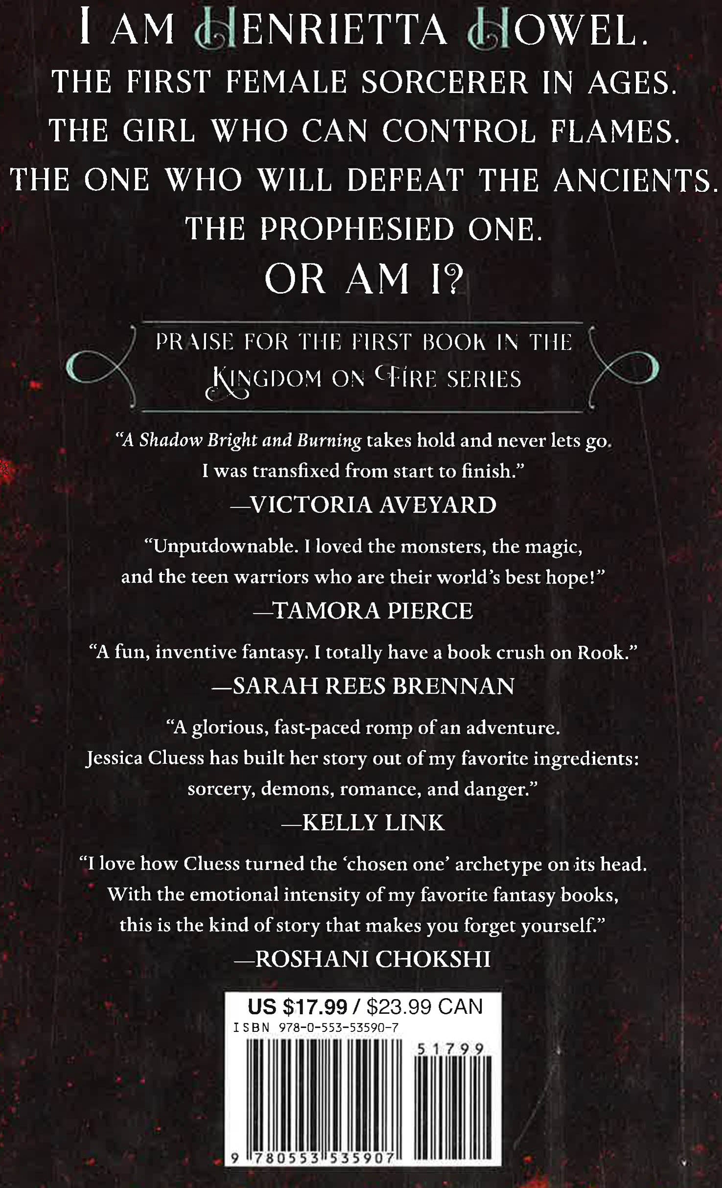 As she plays a dangerous game of deception, she discovers that the sorcerers have their own secrets to protect. With battle looming, what does it mean to not be the one? And how much will she risk to save the city--and the one she loves? Exhilarating and gripping, Jessica Cluess's spellbinding fantasy introduces a powerful, unforgettably heroine, and a world filled with magic, romance, and betrayal. Hand to fans of Libba Bray, Sarah J. Maas, and Cassandra Clare. "The magic! The intrigue! The guys! We were sucked into this monster-ridden, alternative England from page one. Henrietta is literally a 'girl on fire' and this team of sorcerers training for battle had a pinch of Potter blended with a drop of [Cassandra Clare's] Infernal Devices."