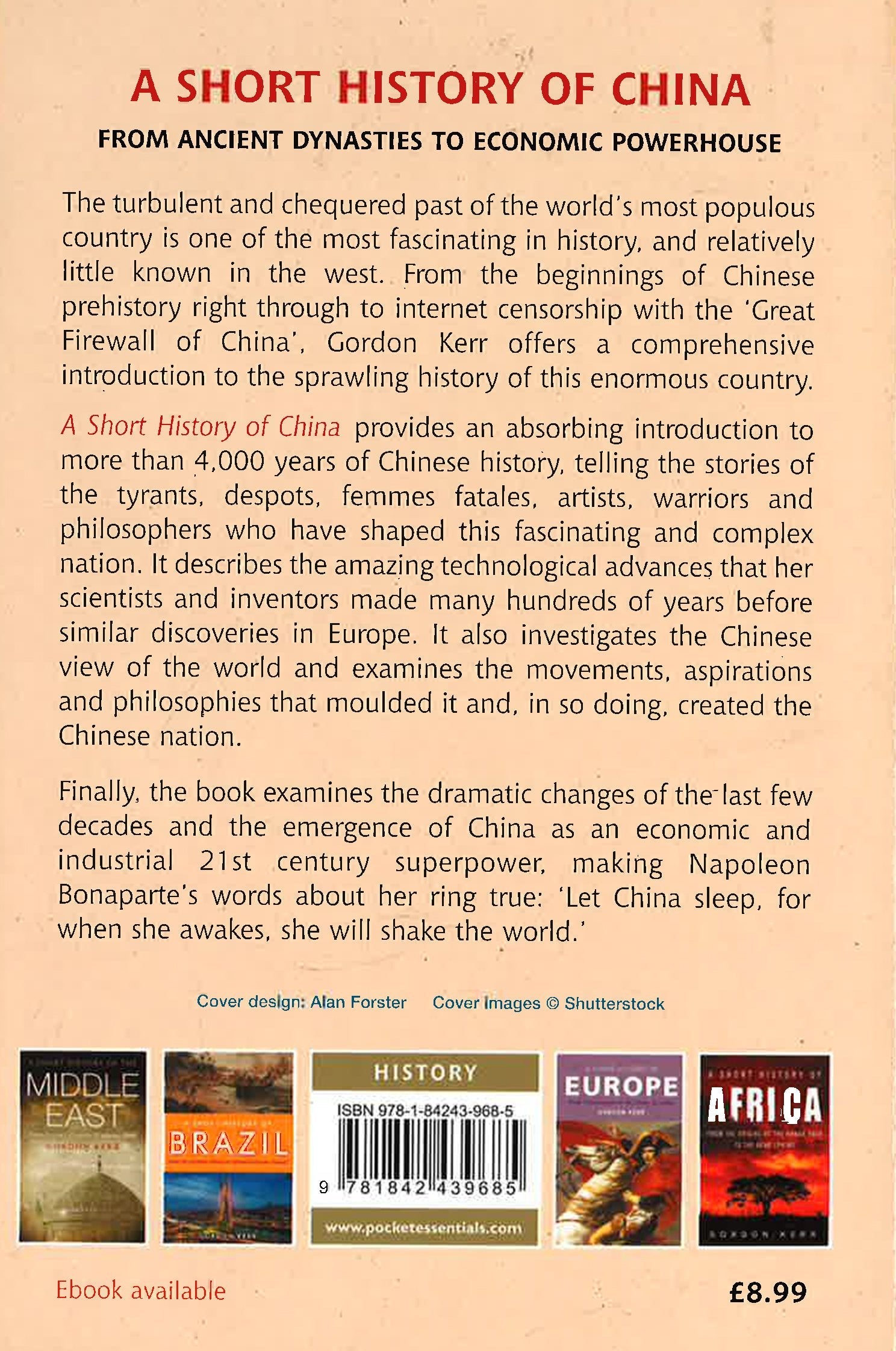 From the beginnings of Chinese prehistory right through to internet censorship, a comprehensive introduction to the sprawling history of this enormous countryAnabsorbing introduction to more than 4,000 years of Chinese history, this book tells the stories of the tyrants, despots, femmes fatales, artists, warriors, and philosophers who have shaped this fascinating and complex nation. It describes the amazing technological advances thatChina's scientists and inventors made many hundreds of years before similar discoveries in Europe. It also investigates the Chinese view of the world and examines the movements, aspirations, and philosophies that molded it and, in so doing, created the Chinese nation. Finally, the book examines the dramatic changes of the last few decades and the emergence of China as an economic and industrial 21st-century superpower.