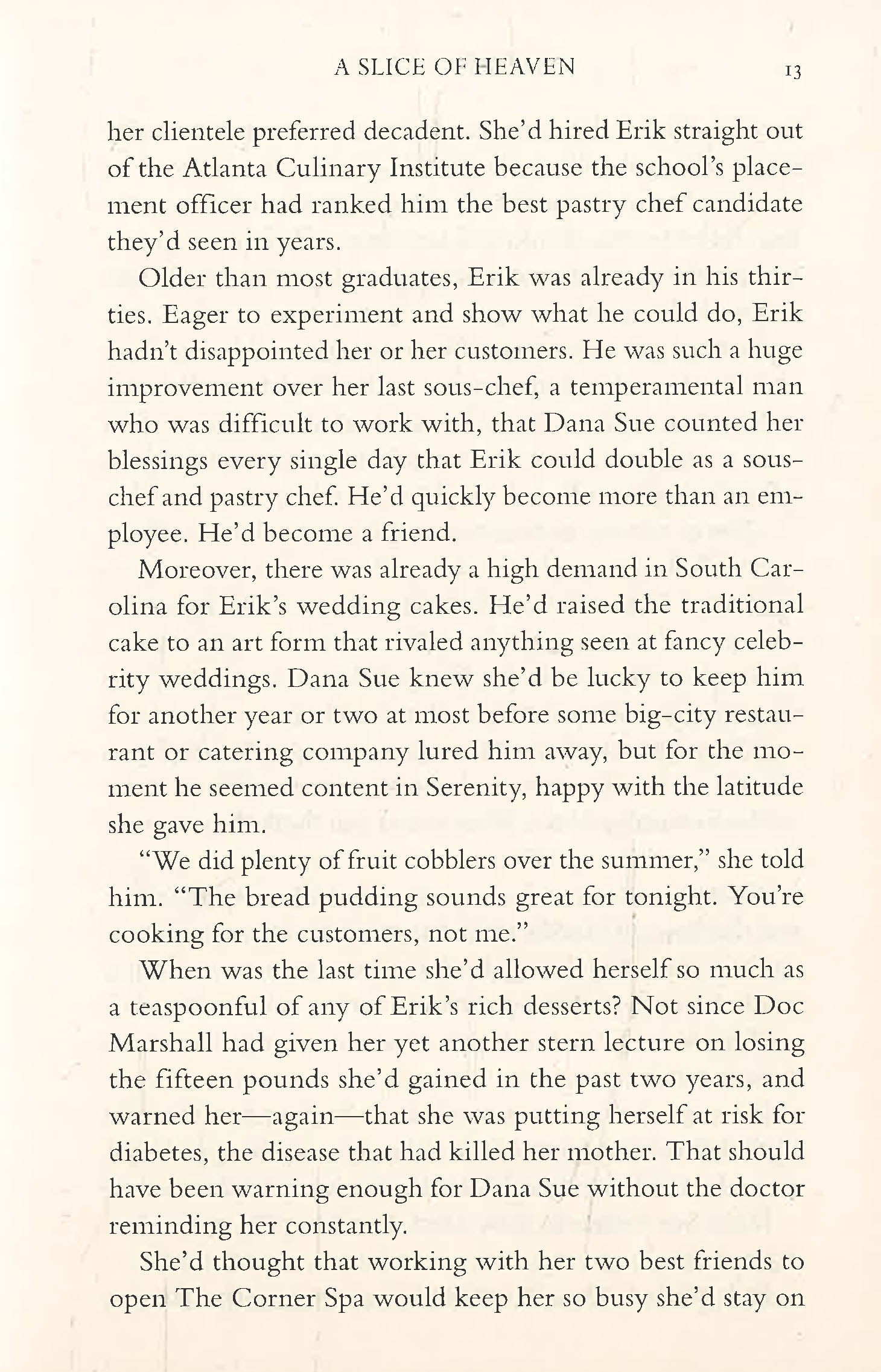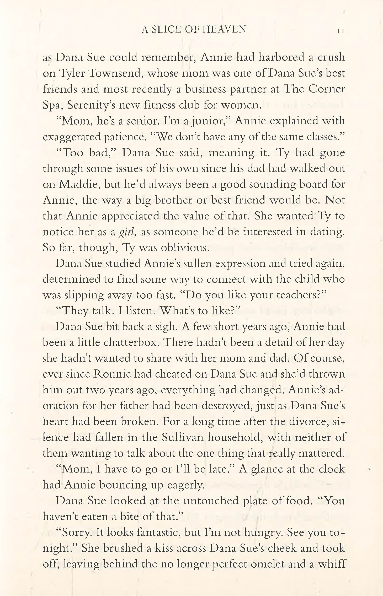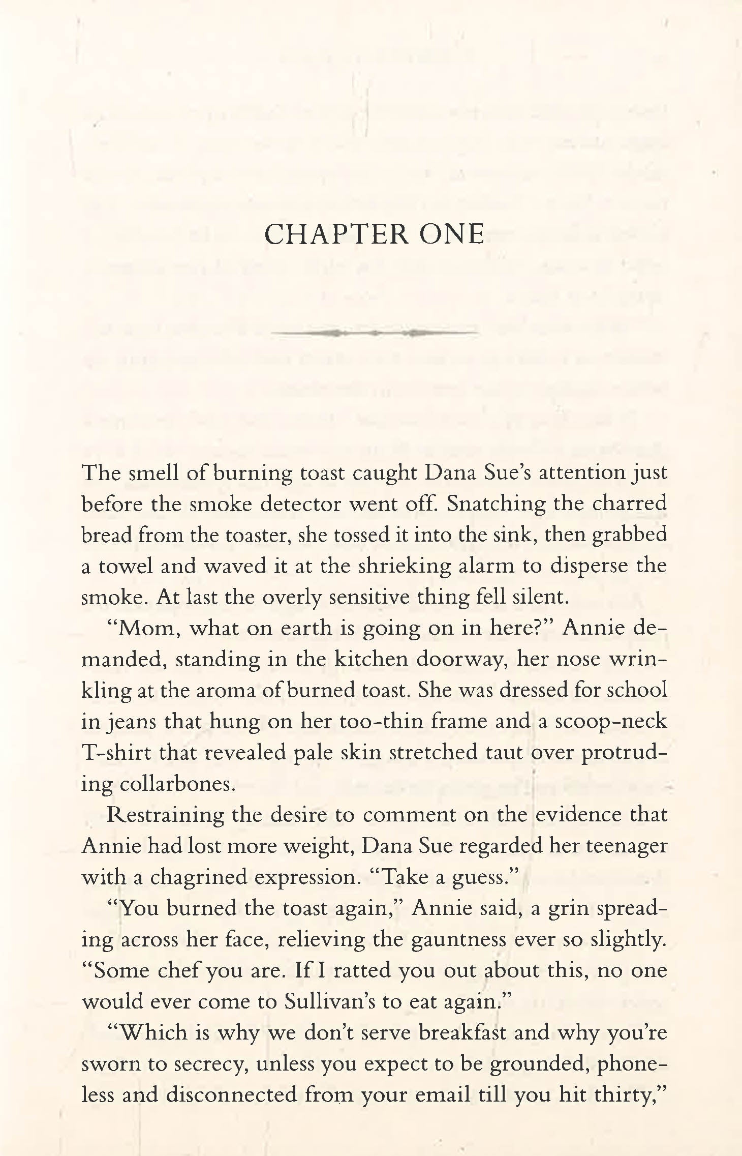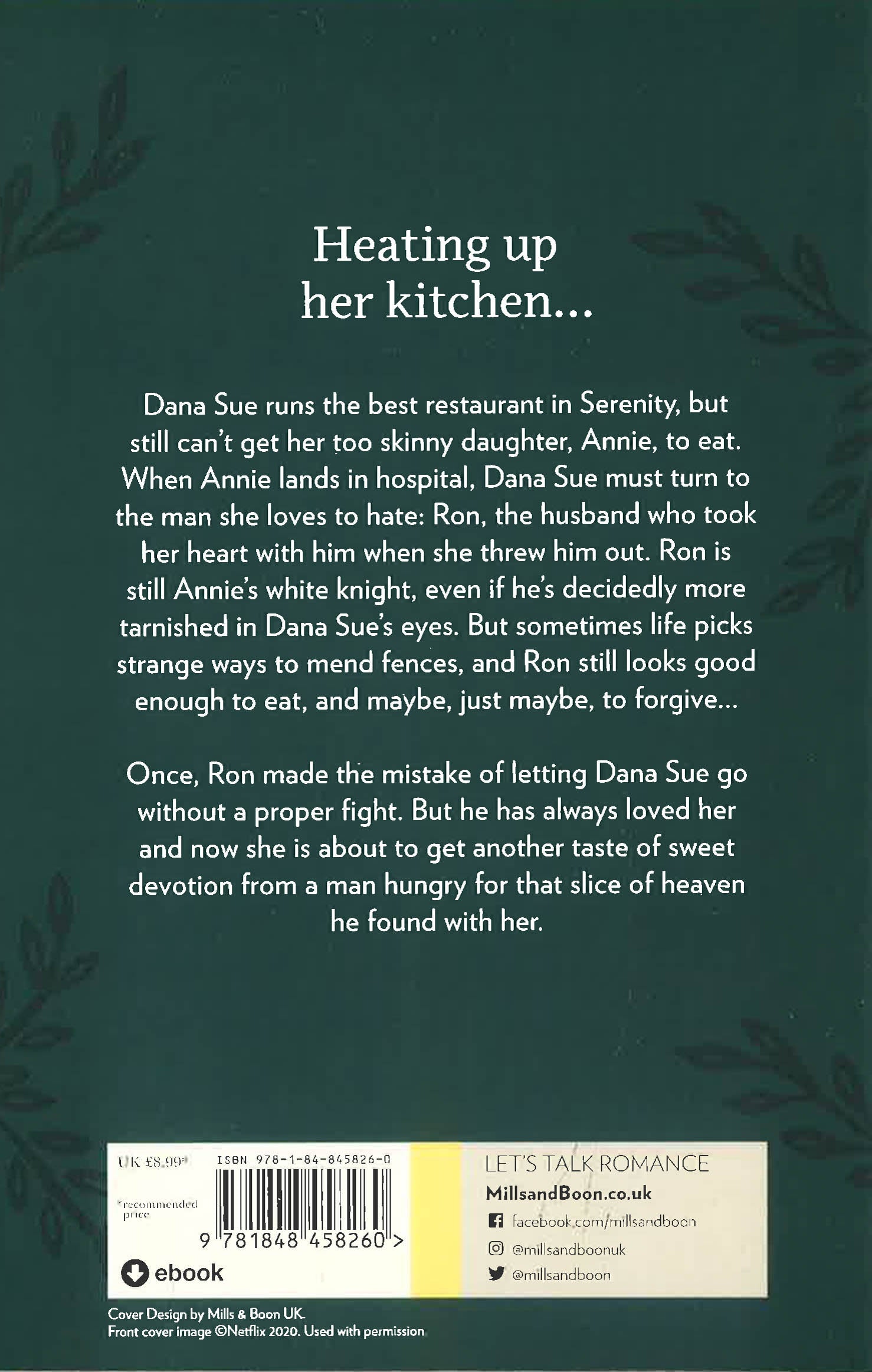 Dana Sue runs the best restaurant in Serenity, but still can’t get her too skinny daughter, Annie, to eat. When Annie lands in hospital, Dana Sue must turn to the man she loves to hate: Ron, the husband who took her heart with him when she threw him out. Ron is still Annie's white knight, even if he's decidedly more tarnished in Dana Sue's eyes. But sometimes life picks strange ways to mend fences, and Ron still looks good enough to eat, and maybe, just maybe, to forgive…
