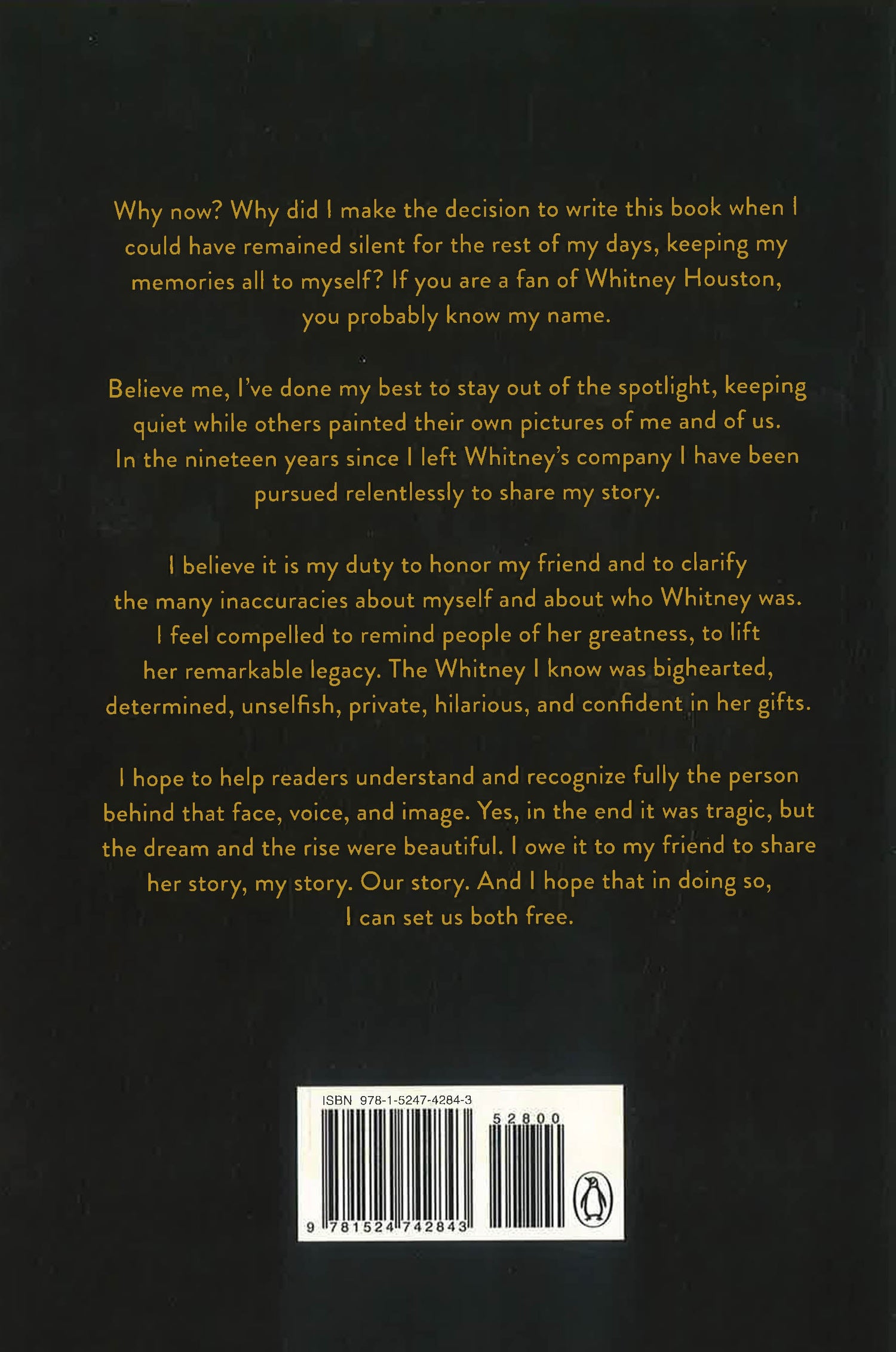 With warmth, candor, and an impressive recall of detail, Robyn describes the two meeting as teenagers in the 1980s, and how their lives and friendship evolved as Whitney recorded her first album and Robyn pursued her promising Division I basketball career. Together during countless sold-out world tours, behind the scenes as hit after hit was recorded, through Whitney’s marriage and the birth of her daughter, the two navigated often challenging families, great loves, and painful losses, always supporting each other with laughter and friendship.