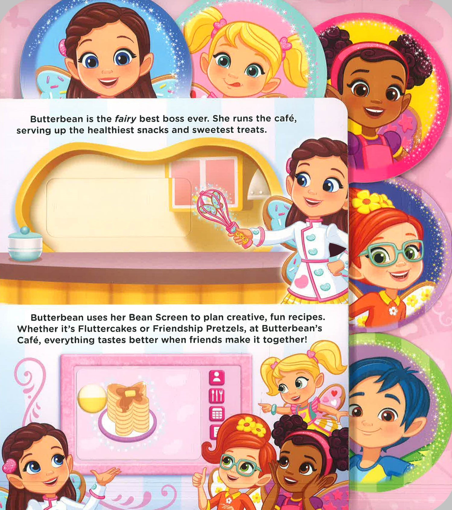 Meet Butterbean and her best friends in Nickelodeon Butterbean’s Café: A Spoonful of Friendship. This board book is full of sliders and pull-outs that bring the fairies and Butterbean’s Café to life. Pull the tab to watch Butterbean use her Bean Screen, help Poppy bake, decorate with Cricket, and much more in this interactive book featuring the sweetest friends around!
