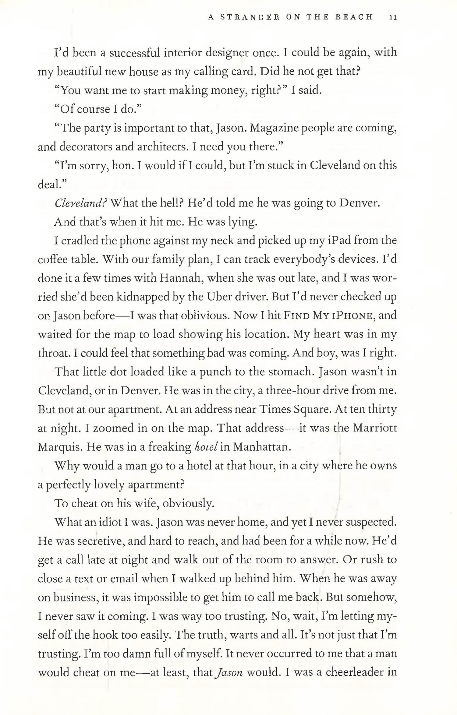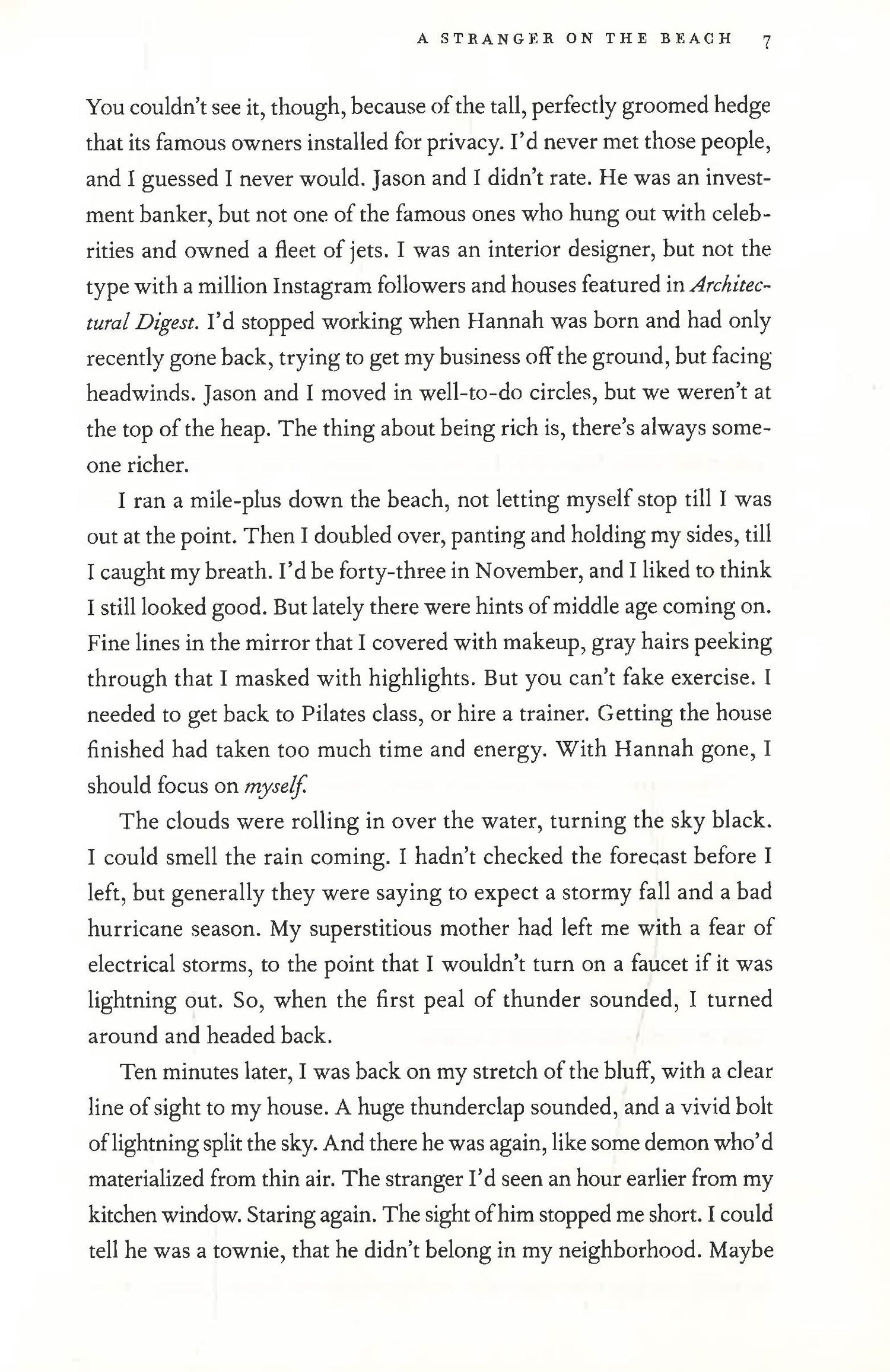 Caroline Stark's beach house was supposed to be her crowning achievement: a lavish, expensive space to showcase what she thought was her perfect family. But after a very public fight with her husband, she realizes things may not be as perfect as they seem: her husband is lying to her, the money is disappearing, and there's a stranger on the beach outside her house.
