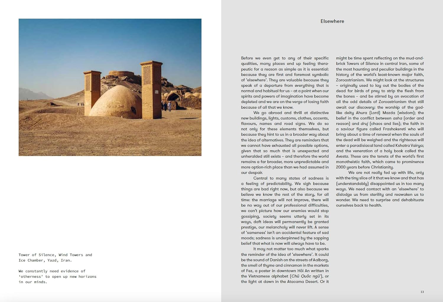 Great travelers have always known that travelling can broaden the mind; here we see how it can also heal it. A Therapeutic Atlas reminds us that the world is far broader and more inspiring than we tend to appreciate day to day. Tempting images are combined with short essays that discuss the power of particular places to help us with the difficulties of being human. We locate places that are therapeutic because they coax us out of familiar patterns of thought and liberate our minds.