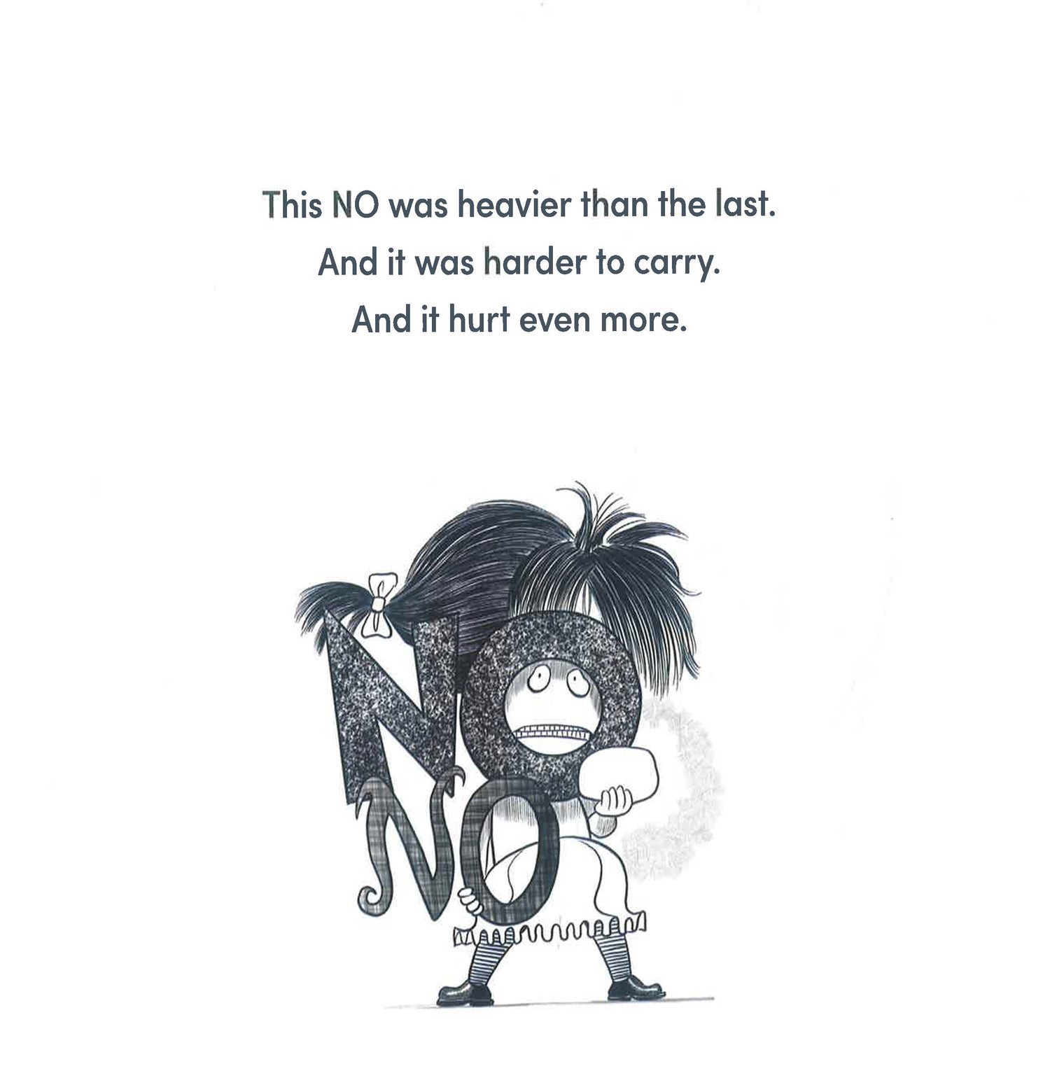 NO after NO after NO come the little girl's way, twisting and squishing her idea. But by persevering, collaborating and using a little imagination, all those NO's become the building blocks for the biggest YES ever!