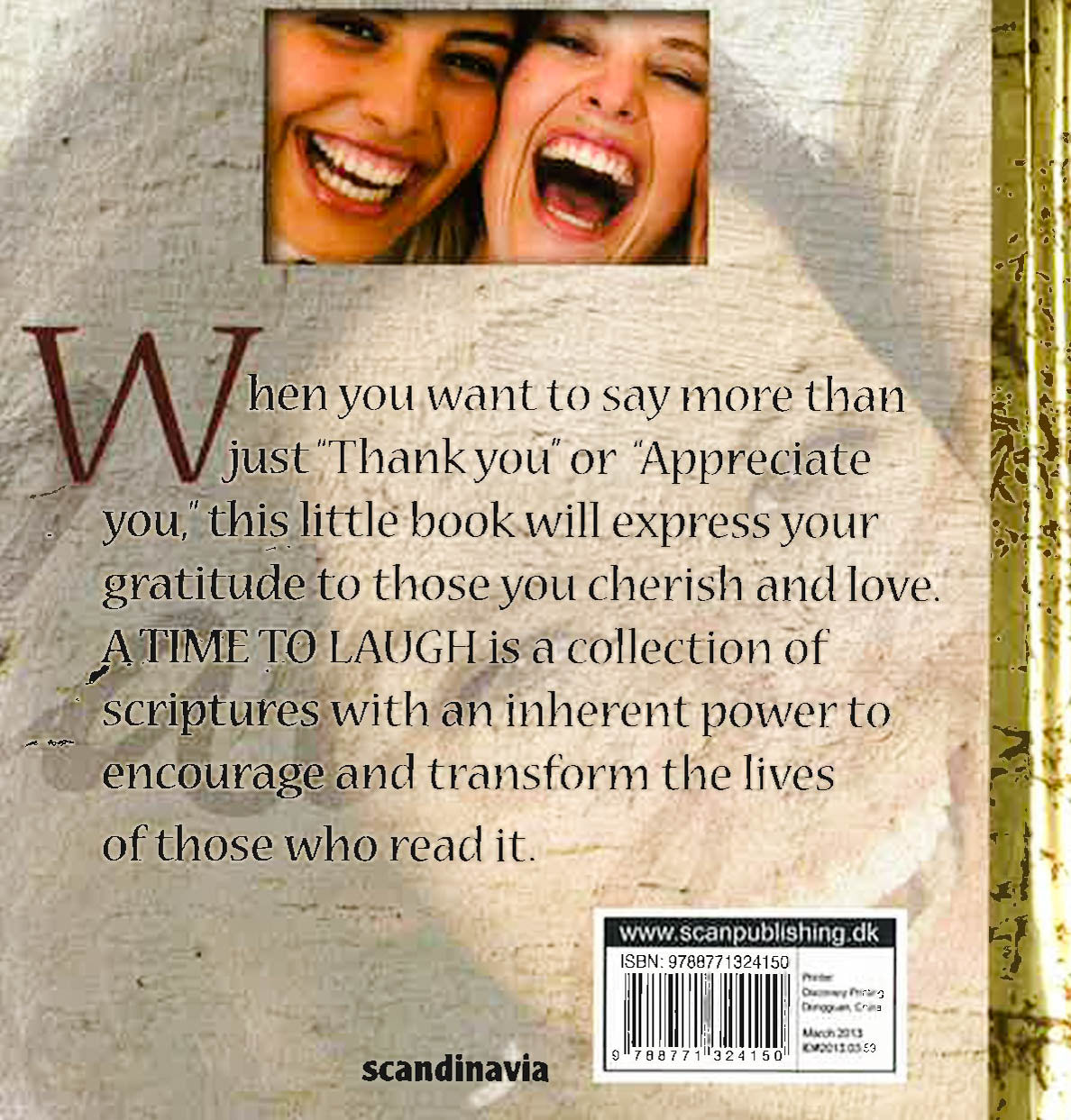 When you want to say more than just Thank you or Appreciate you, this little book will express your gratitude to those you cherish and love. A TIME TO LAUGH is a collection of scriptures with an inherent power to encourage and transform the lives of those who read it. Includes card and glossy art bag